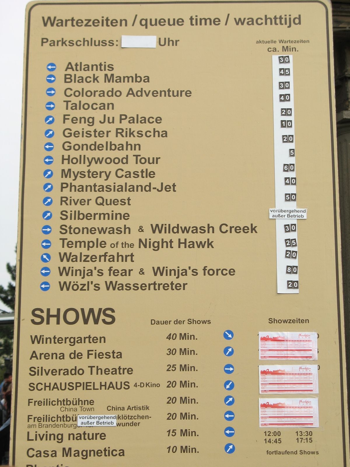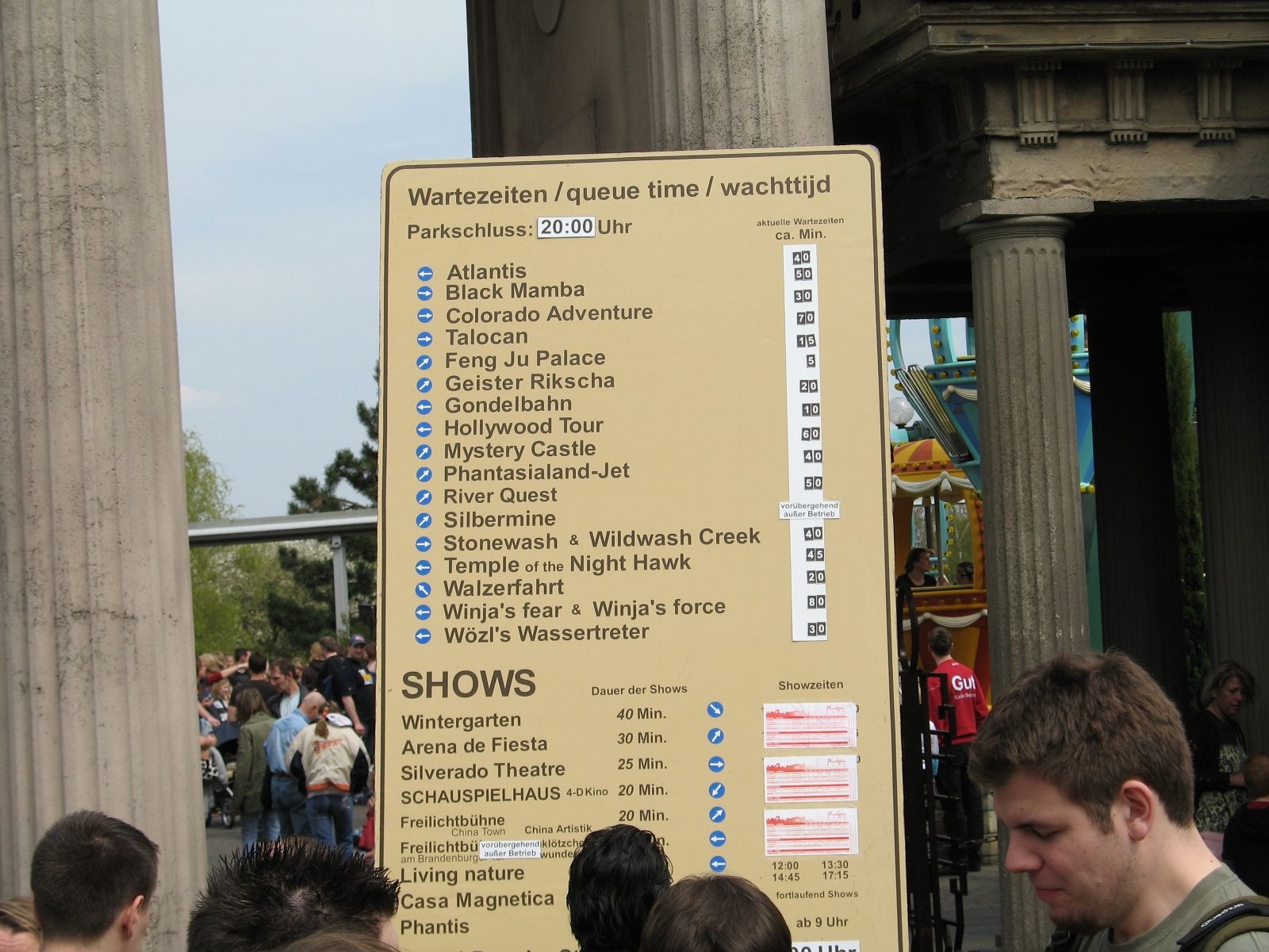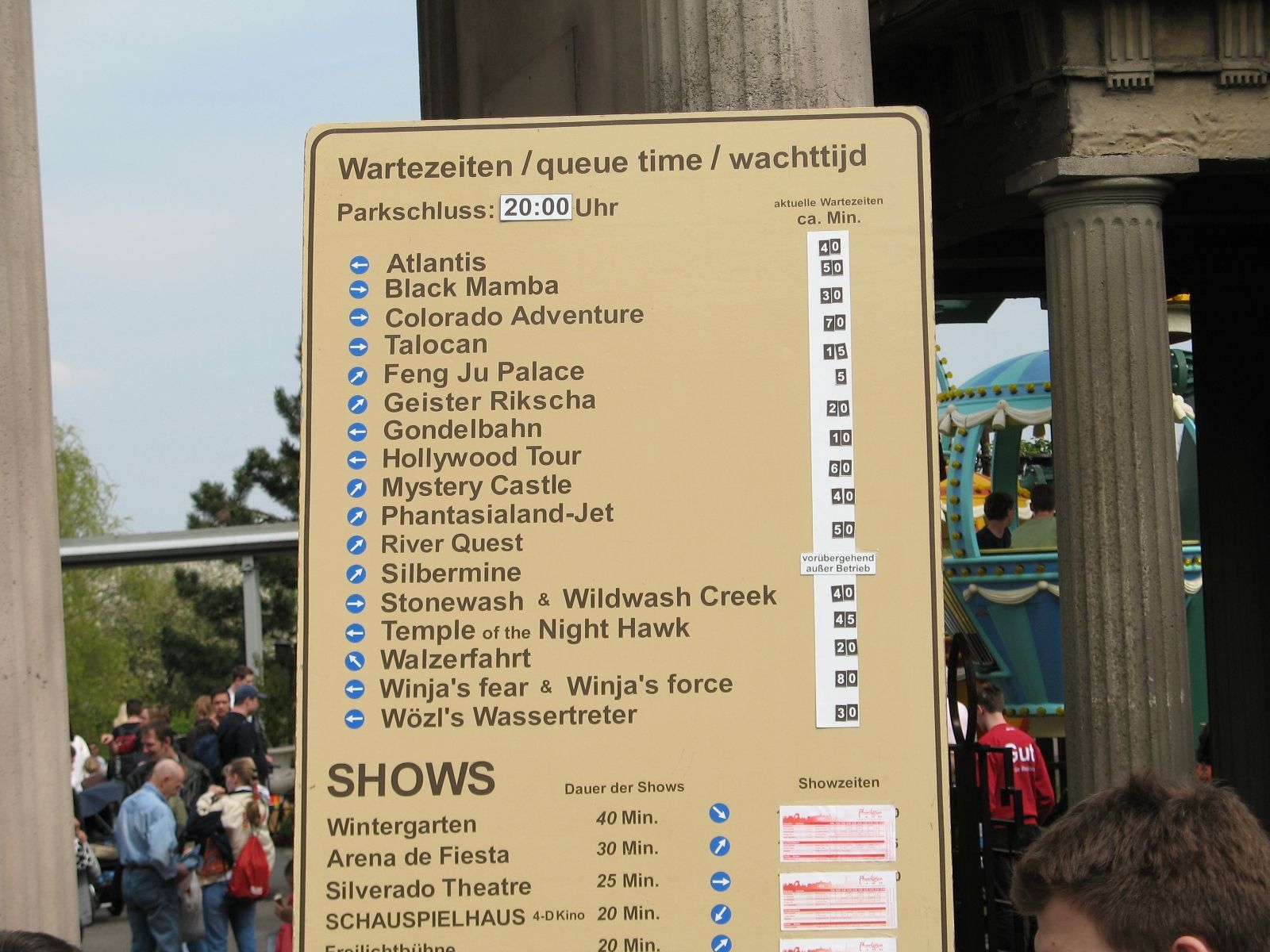 Ich war heute auch im Park und war anfangs auch geschockt, hatte aber schon damit gerechnet (Sparkassen-Aktion, letzte Chance für Freikarte, sonnig, warm, Wochenende...)! Ich fands sehr lobenswert vom Park, dass bis 20 Uhr geöffnet war, so konnte man nach 18 Uhr die Hauptattraktionen noch mehrmals fahren, da dort die Warteschlangen ab 18 Uhr drastisch kürzer wurden. Alles in allem ein toller Tag mit tollem Wetter - auch wenn man lange anstehen musste, lag der Spaßfaktor noch darüber.