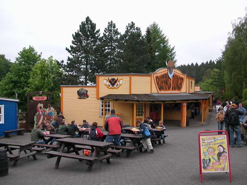 Am Eingang erhält jeder Besucher einen Parkplan, an dem Gutscheine z. B. für ein Stück Kuchen gratis, beim Kauf eines Pott Kaffees, etc. mit angehängt sind - schöne Idee, wie ich finde. Außerdem kann man mit der Eintrittskarte gleich ein "Burger-Menü" für 3,90 Euro erwerben - hier spart man sich Ketchup und Mayo zu den Pommes. Richtig lohnenswert ist der Kauf eines "All inclusive"-Gutscheinheftes für 8,90 Euro! Dafür gibt es ein Mittagessen + Getränk + Eis + Wasserballons für das Wasserkatapult + Schlüsselband!