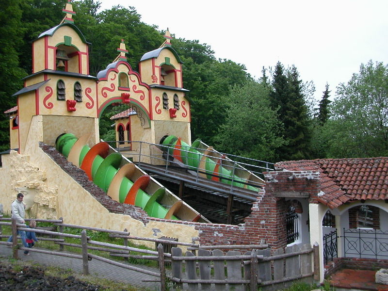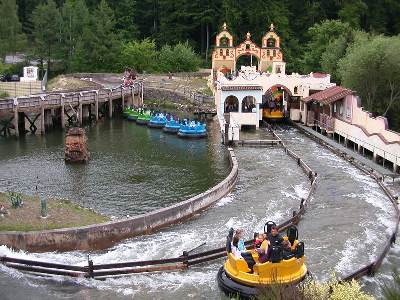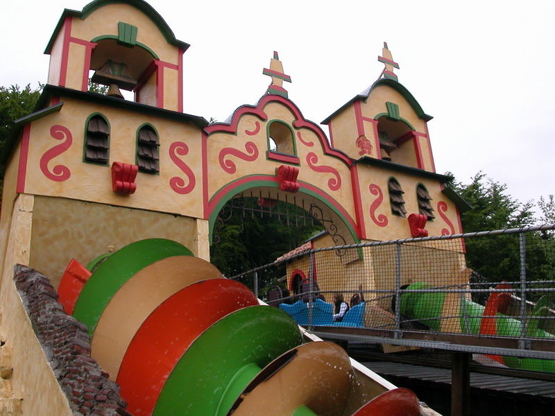 ... einer sehr schön thematisierte Rafting-Anlage von Bear Rides. Besonders auffällig sind hier die bunten "Wasserschnecken", die das Wasser nach oben "schrauben" und das ungewöhnliche Beförderungssystem in der Station (Bild dazu gibt es im zweiten Bericht).
