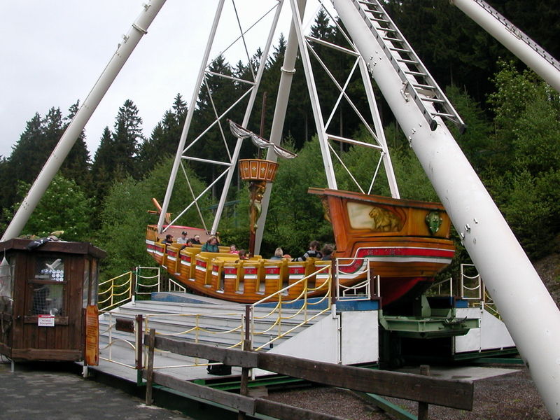Weiter auf dem Weg in den unteren Teil des Parkes vorbei an einer Huss "Schiffschaukel" namens "Pirat" und dem "Tomahawk" (Typ: Shake von Mondial)