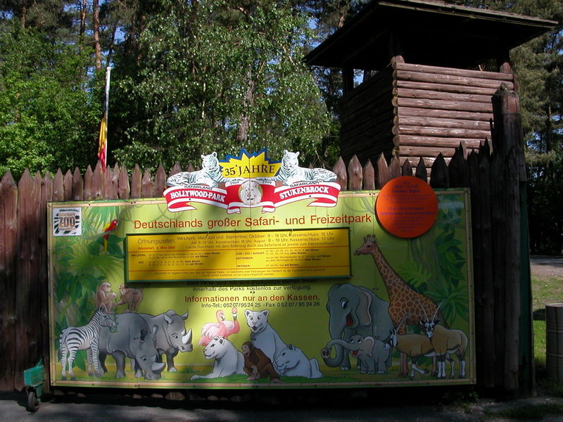 Zweite Station (19.05.2008) meiner "Sauerland"-Tour war der Hollywood- und Safaripark Stukenbrock. Also früh aufstehen, noch schnell ein reichhaltiges Frühstück in der Pension einnehmen und ca. 1 Stunde Autofahrt (von Bestwig) nach Schloß Holte Stukenbrock. Was für ein schöner Morgen, die Sonne lachte vom Himmel, angenehme Temperaturen und ich war bereit auf wilde Safari zu gehen. Leider gibt es in Stukenbrock in der Nebensaison unter der Woche keine Shows, dafür kostete der Eintritt ohne Hollywood-Theater, Cowboy- und Indianer-Show und Zirkus-Programm, auch nur 16,50 Euro statt 23,00 Euro für Erwachsene.