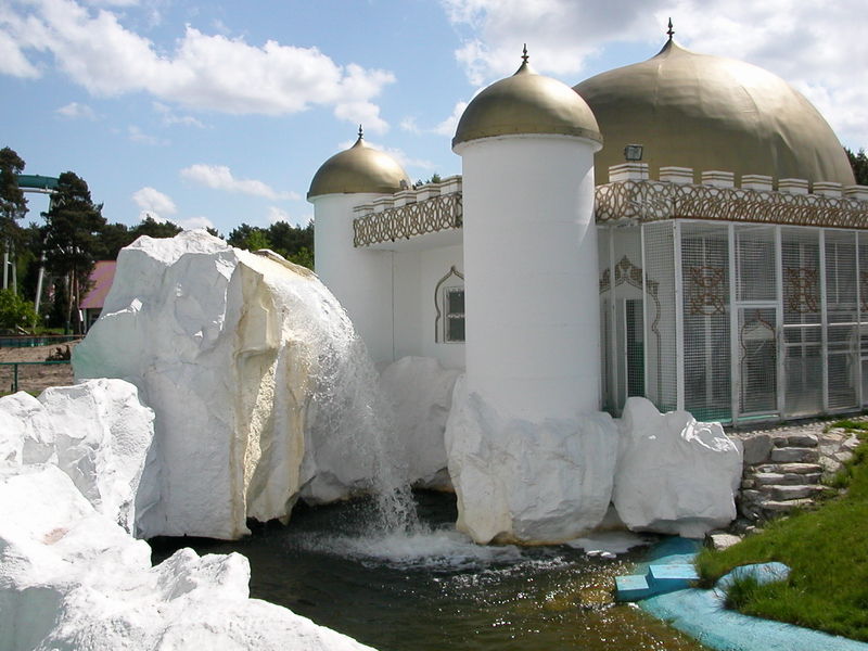 Die Safari-Tour endet im hinteren Teil des Parkes direkt am Gehege der weißen Löwen, von dort aus geht es zum Affen-Freigehege, zu den weißen Tigern, Nashörnern und dem Café Restaurant "Oriental".