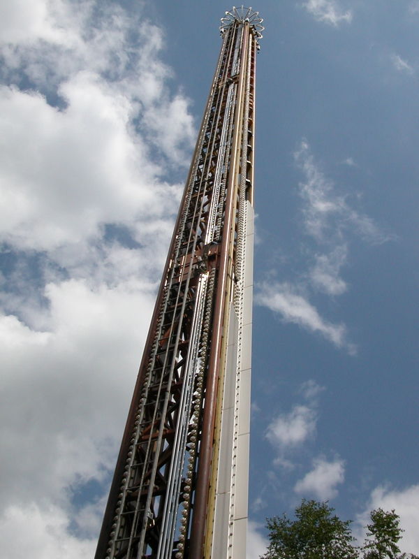 Der große Bruder "Giraffen Tower" steht gleich daneben und ist auch ein Fahrgeschäft aus dem Hause Fabbri, ein sogenannter Mega Drop Tower, 40 Meter hoch und mit ordentlich Adrenalin, da es sich nicht wie ich anfangs vermutete um eine Shot'n'Drop handelt, sondern um einen echten Freefall.