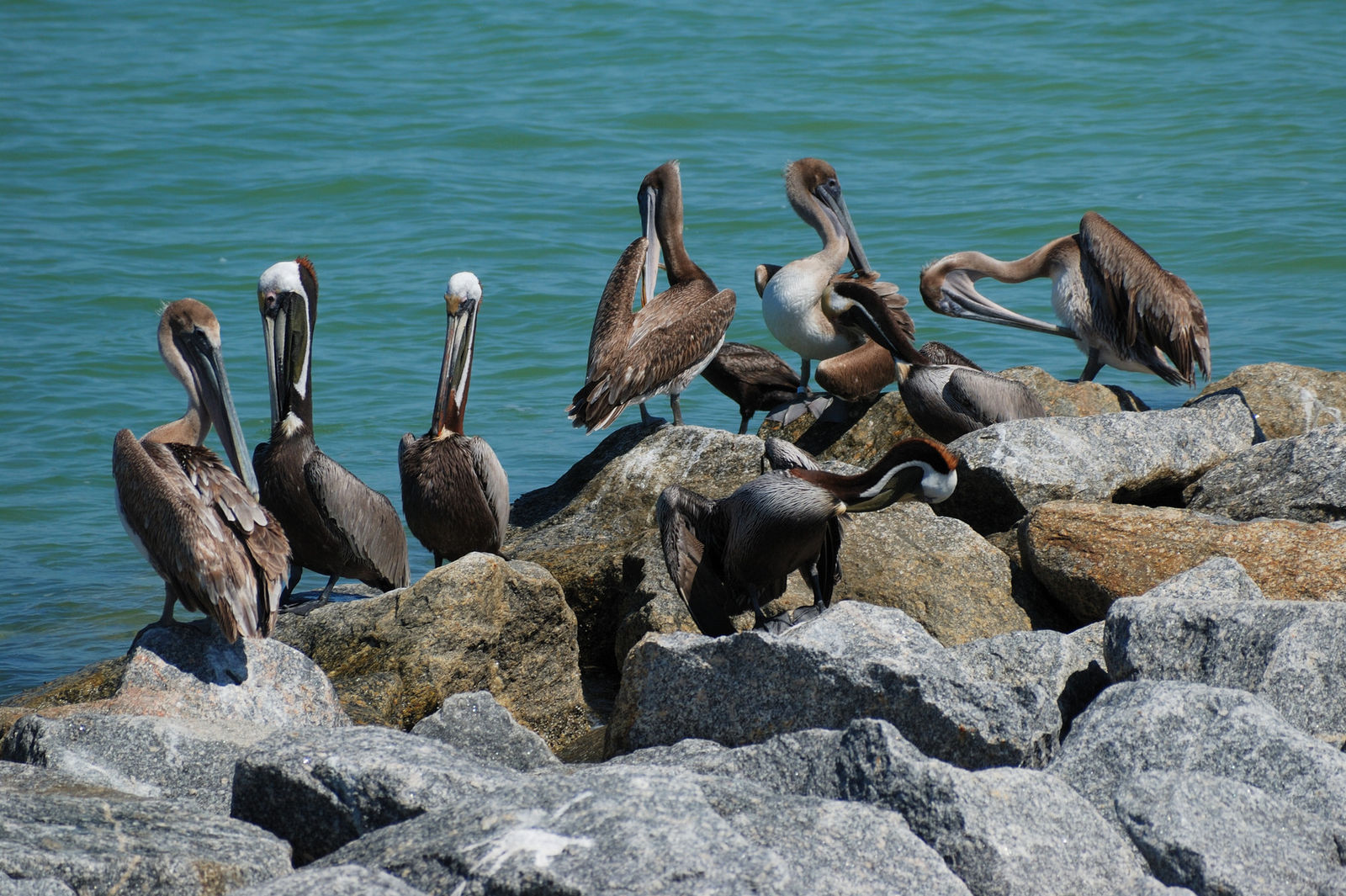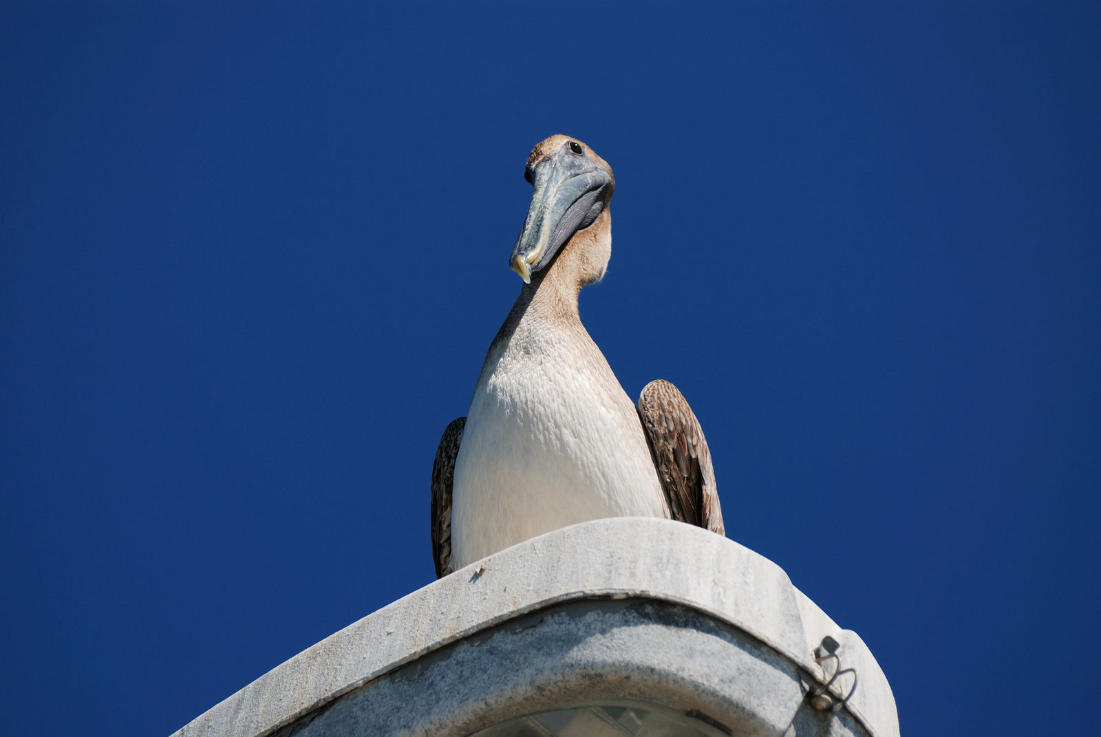 Fort DeSoto Pier ist auch bei Pelikanen als Ausflugsziel beliebt, da man hier sehr schön Touristen in freier Wildbahn beobachten kann.