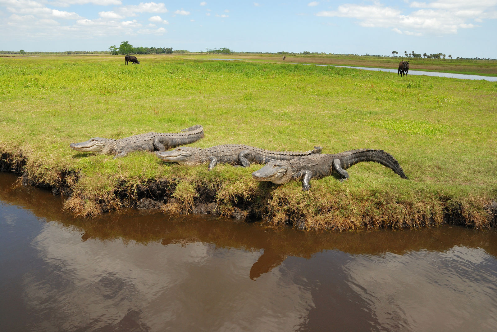 Tatsächlich: Alligatoren-Mittagstisch. Yummy! (Nein, ich habe Euch veräppelt. Alligatoren essen gar keine Kühe)