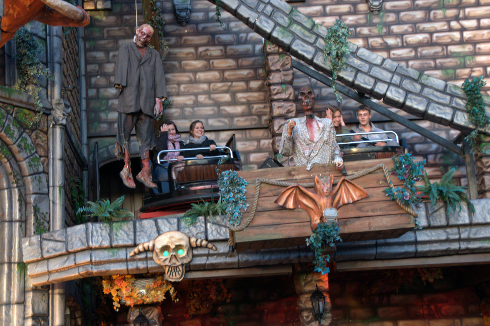 Es hat sehr viel Ähnlichkeit mit einem Coaster. Bin damit gefahren. Die Chaisen sind Spinning-Chaisen. Es sind doch einige Elemente einer Achterbahn dort eingebaut. Es ist eine Mischung von Geisterbahn und Achterbahn. Auch das Schienensystem ist von einer Achterbahn.