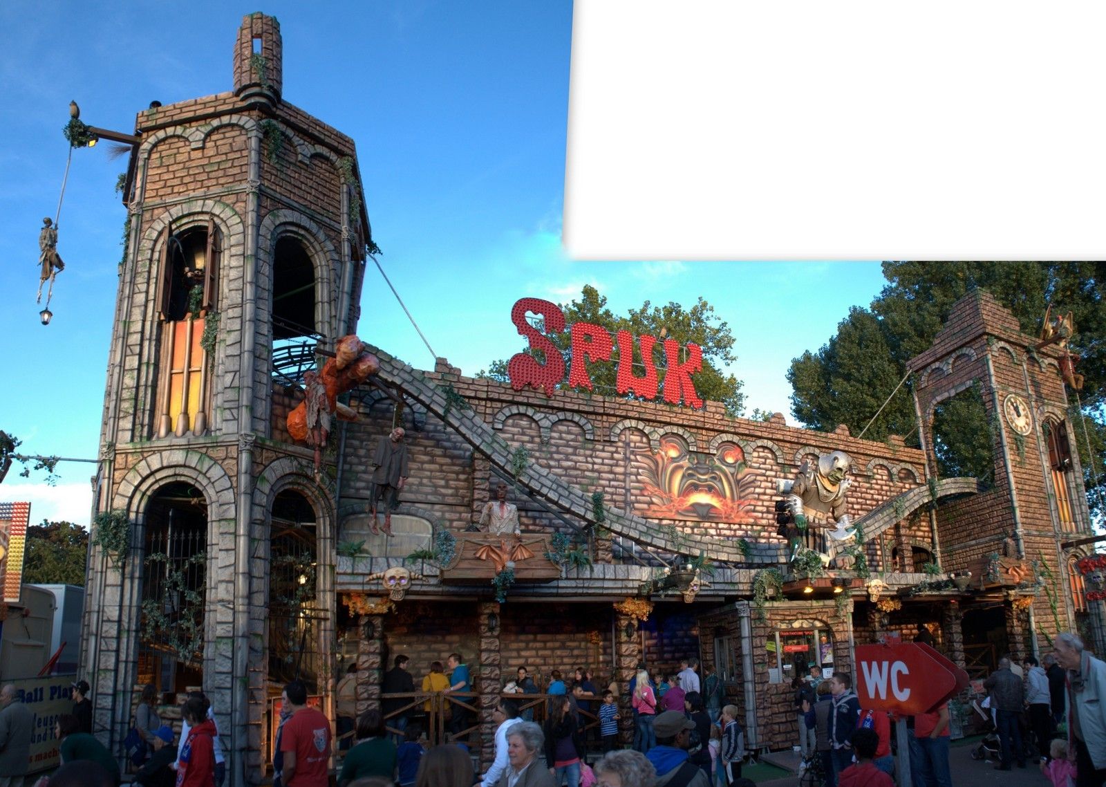 Nicht erschrecken, an der weißen Ecke fehlt nichts, das ist aus 2 Bildern zusammengebastelt, da der Gang vor dem Fahrgeschäft zu eng war um eine Komplettaufnahme der Front in einem schießen zu können.