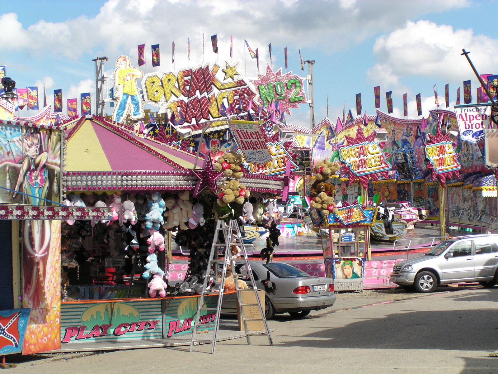 Soweit ist alles fertig und es ist richtig voll auf dem Platz. Diesmal gibt es sogar eine Wasser und eine Achterbahn.