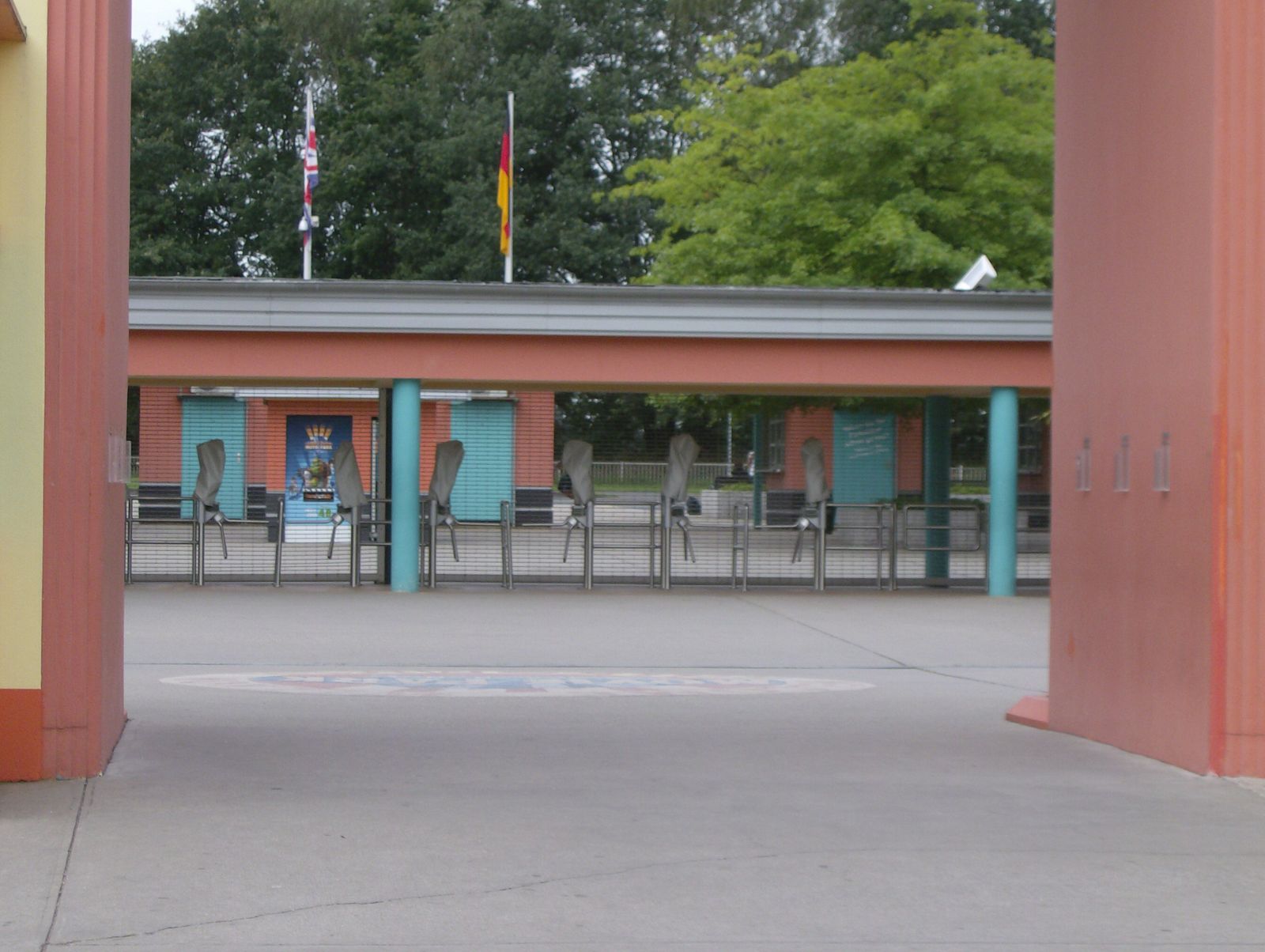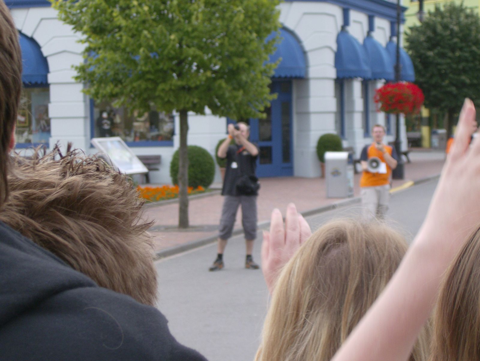Die Vorführung war interessant (auch wenn hier recht gealbert wurde) und auch das Gruppenphoto war an einer interessanten Stelle. Was mich allerdings überrascht hatte, dass auch nicht Fanday-Besucher hier mit durchgegangen waren. Sie hatten keinen Platz weggenommen, von daher war es nicht tragisch, aber da sie nicht in der Gruppe waren, hatten sie zu verschiedenen Lachern keinen Bezug (z.B. Katjas Stiefel auf dem Pult).