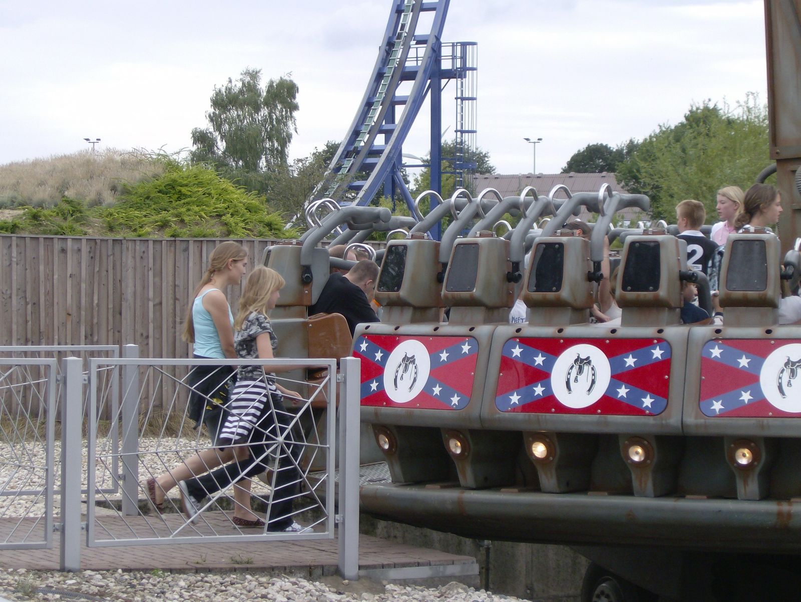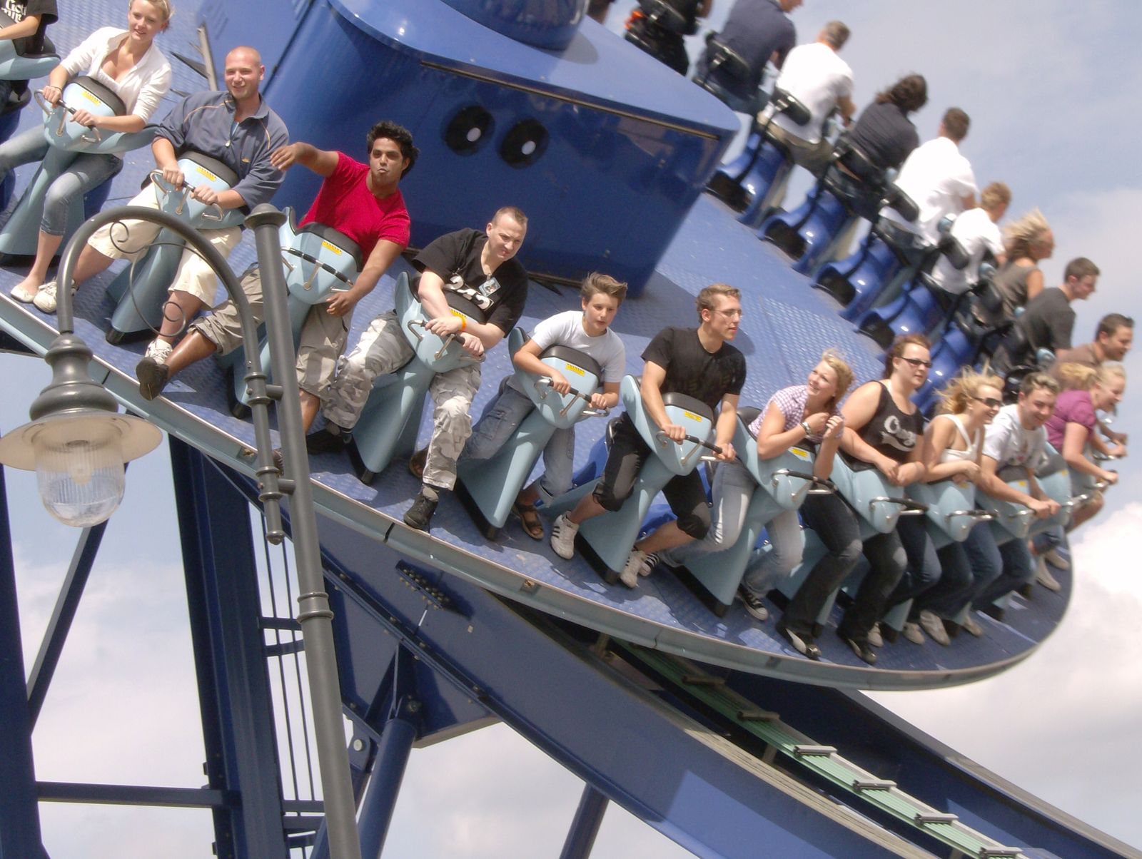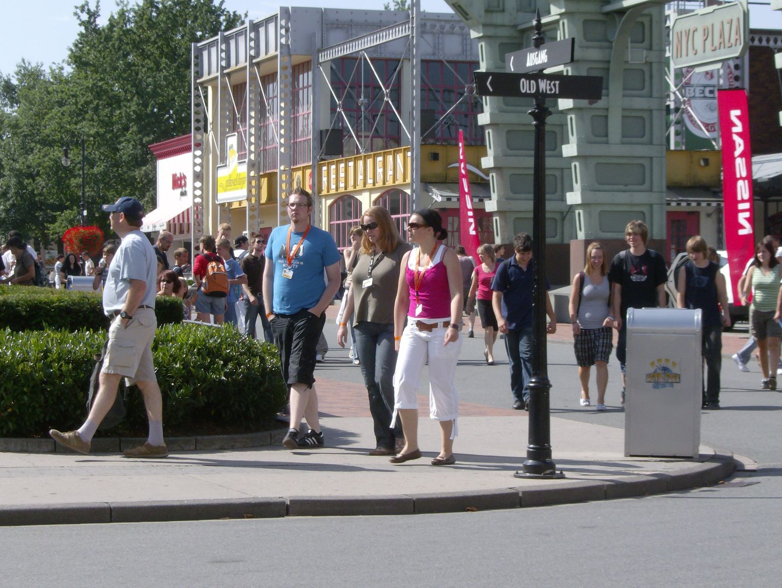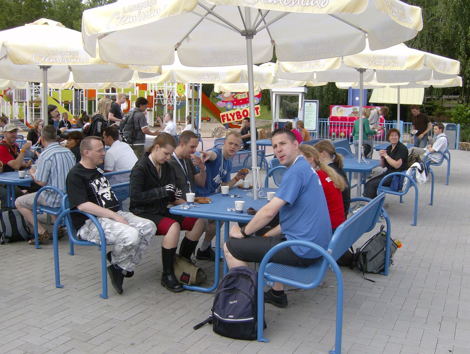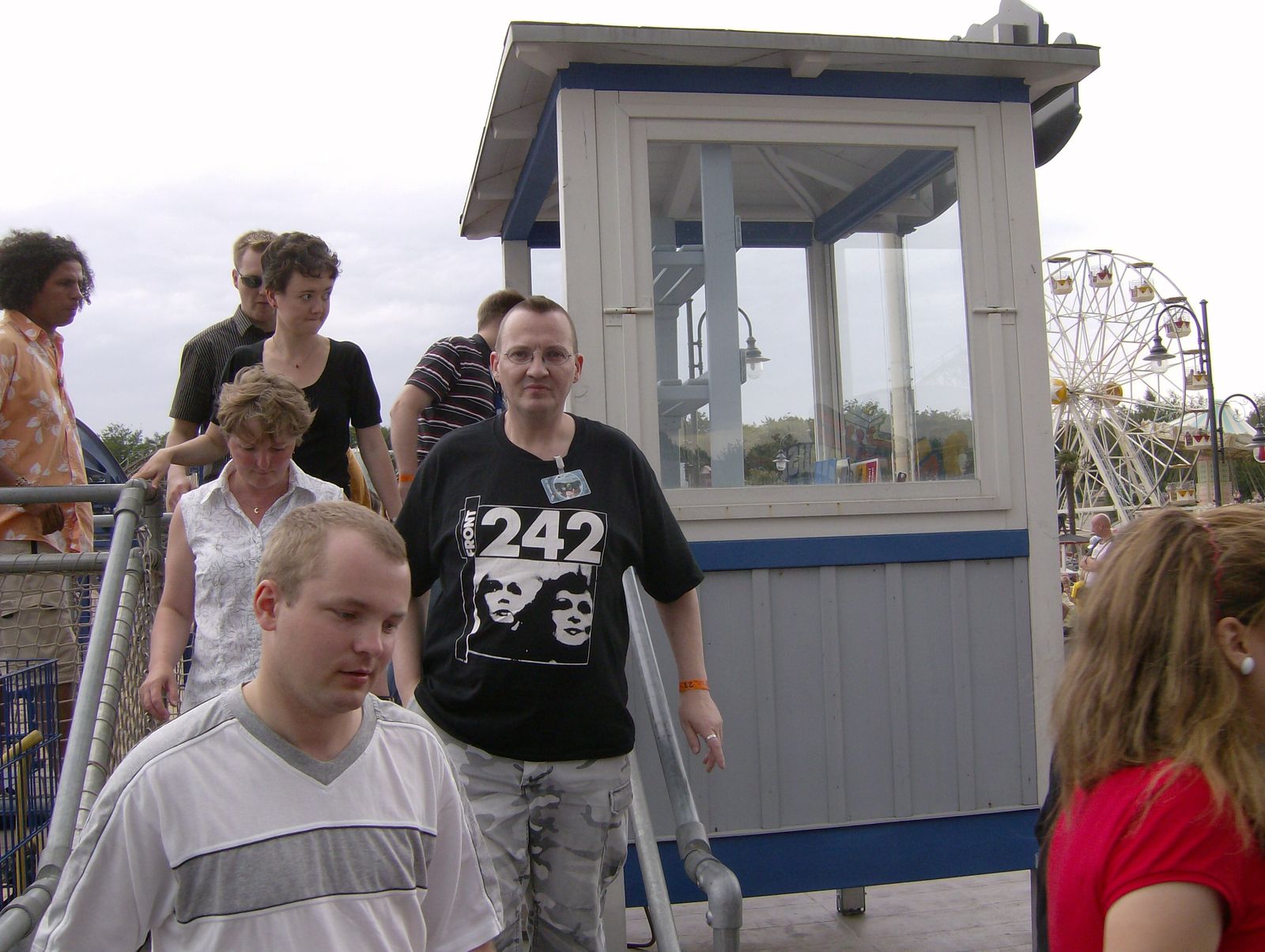 Der nächste Programmpunkt war dann der Time-Rider, den Volker alleine besucht hat. Während des Wartens fiel mir auf, dass die FKFler wohl eher in Zweiergruppen unterwegs sind, während die onRider doch eher in Rudeln auftreten (leider bog die Gruppe in den Time-Rider ein, bevor ich sie knipsen konnte).