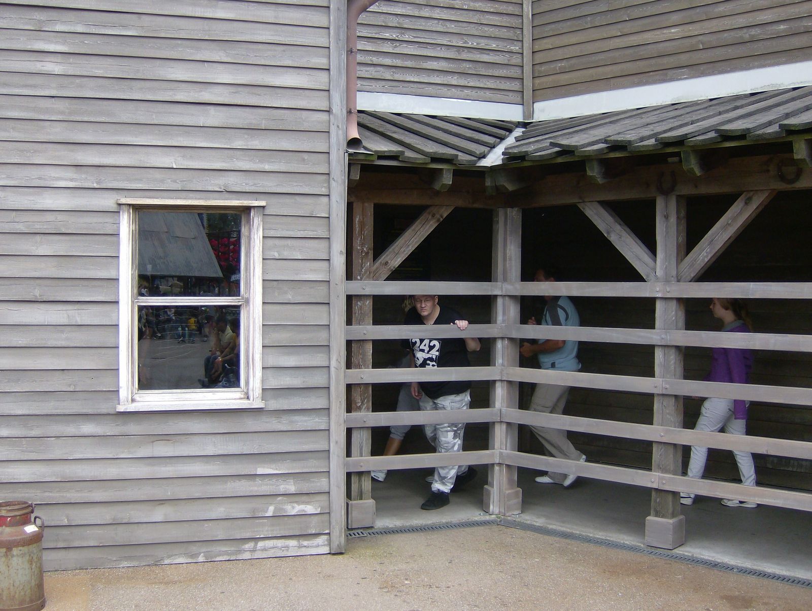 Als nächstes sind wir dann mit dem Bermuda-Dreieck / Alien Encounter gefahren und finden, dass das Wasser mal wieder getauscht werden könne. Mein letzter Besuch ist zu lange weg, um beurteilen zu können, ob sich da irgendwas verbessert / verschlechtert hat. Da wir zeitig dort waren, war die Schlange auch schön kurz. Als wir ausstiegen, standen die Leute schon beim Torbogen zum Hauptplatz an.