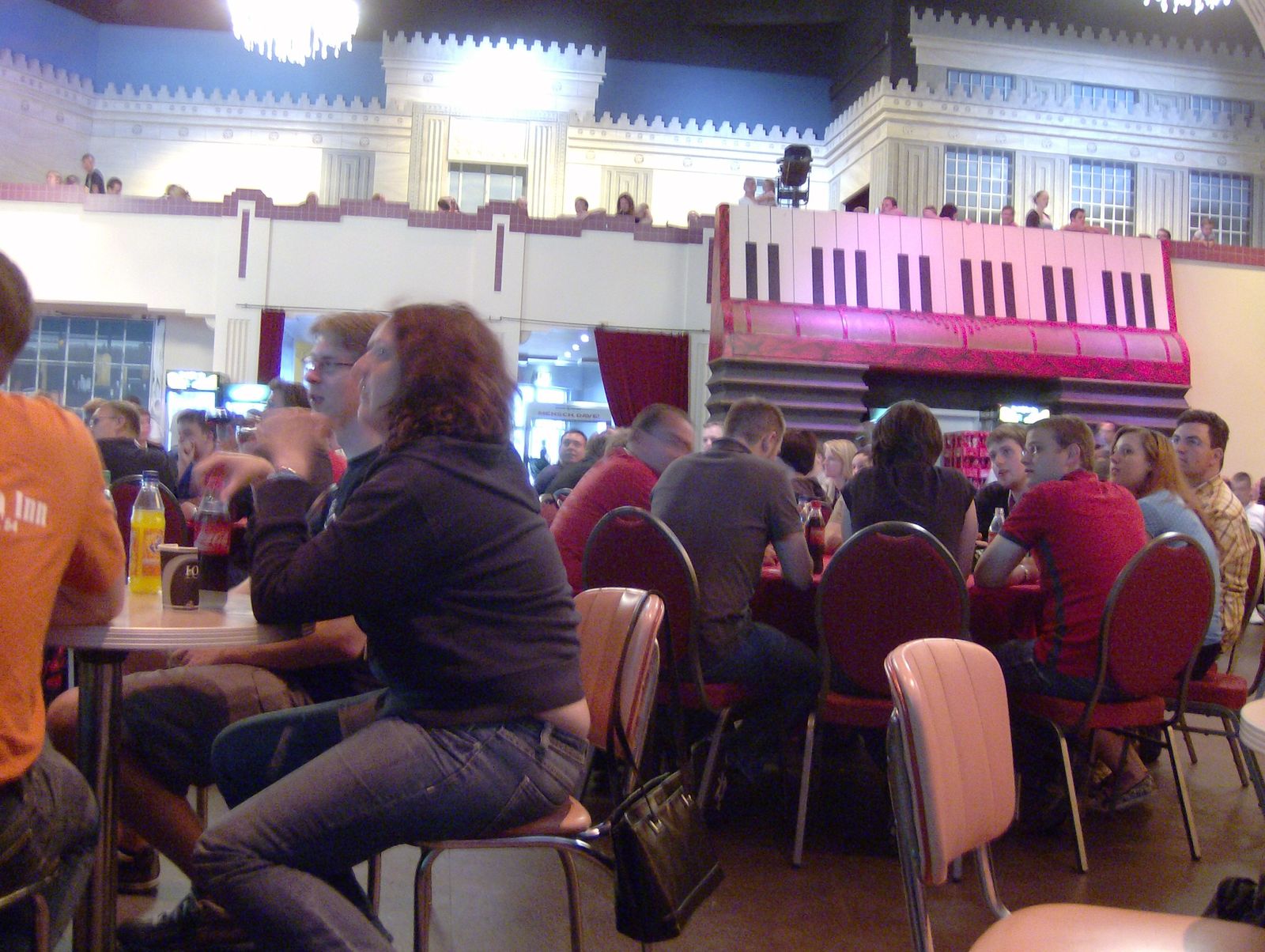 Weiterhin kamen wir auch wieder am Kino (Shrek) vorbei, wo wir uns eigentlich noch mal die englische Ausgabe anschauen wollten. Aber nicht bei der Schlange (bis zurück zur Kurve).