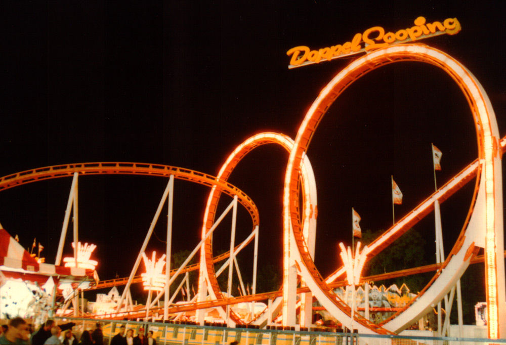 Ich bin den Barth-Doppel-Looping unter Conklin gefahren. Auf der Westchester County Fair, Yonkers Raceway, NY. Im Mai 1997. Da stand der "Laser" schon lange in Dorney. Gescanntes Foto von der Bahn in Yonkers anbei.