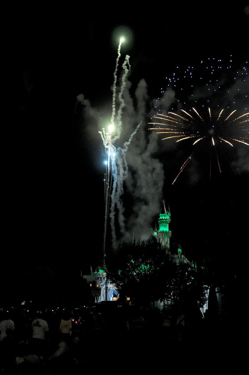 Wer einen guten Platz für das Feuerwerk sucht (wohlmöglich noch mit Blick auf das Schloss), sollte sich schon relativ früh dorthin begeben, denn es wird sehr schnell sehr voll. Die Cast-Member haben die Situation auch rigoros im Griff: Ist ein Bereich voll, wird er abgesperrt und „Entschuldigung, darf ich mal kurz“-Schlauberger gucken in die Röhre. Dafür ist das Feuerwerk selbst absolut sehenswert: Die von Musik begleiteten Figuren nehmen als Thema einzelne Attraktionen des Parks auf. Super!
