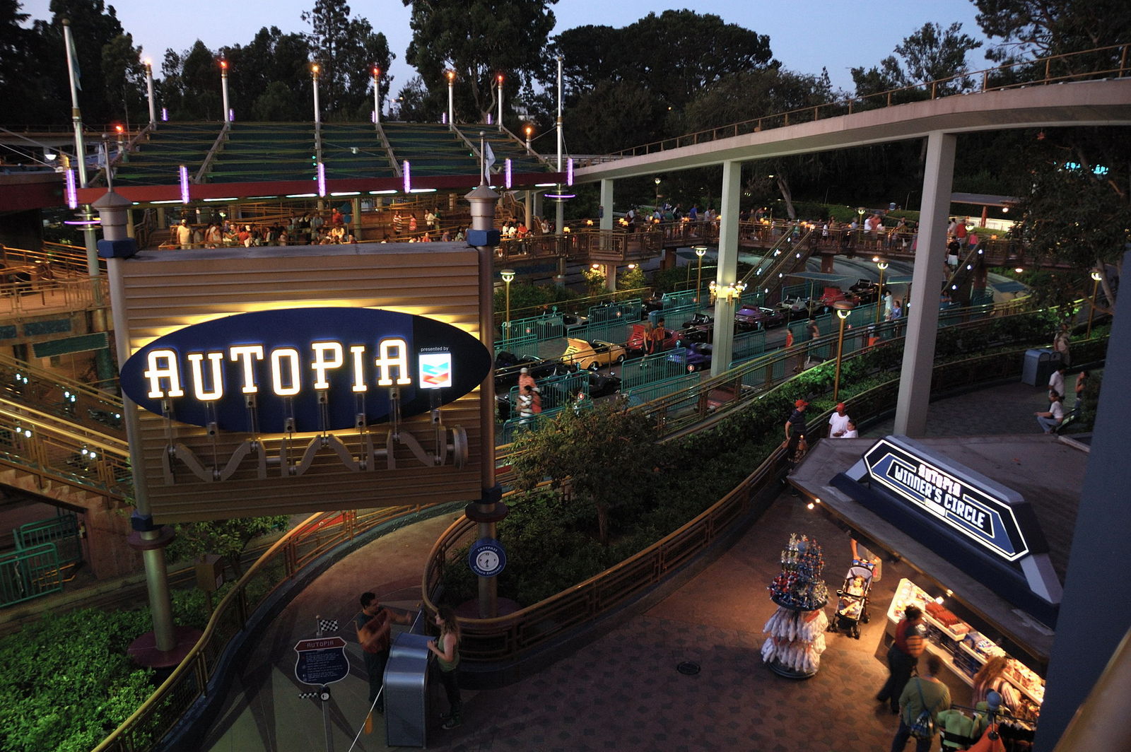 Nicht verpassen – trotz teilweise längerer Schlangen – sollte man auch Autopia. Die erst 2000 umgestaltete Attraktion ist schon alleine deswegen so kultig, weil die auf einem – schön gestalteten – Rundkurs selbst fahrbaren Autos mit Verbrennungsmotoren ausgestattet wurden. Wer das noch erleben will, sollte sich ein wenig sputen: Die Spatzen pfeifen von den Dächern, dass Autopia 2010 mit Elektromotoren ausgestattet wird, sollte sich dieses bereits in Hong Kong eingesetztes System bewähren.