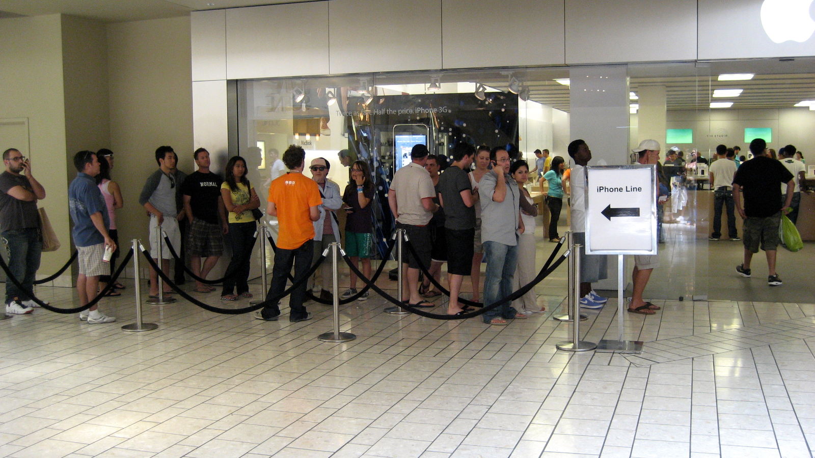 Zu diesem Bild kann man nur sagen: Es gibt bei den Apple Shops eine eigene IPhone Line ausserhalb des Stores. Hier gilt "der frühe Vogel fängt den Wurm". Denn um 10 Uhr morgens sind die Dinger ausverkauft. Also eine Stunde nach Ladenöffnung. In Californien muss man ein IPhone besitzen. Jeder hat eins. Vor allem junge Mädchen, was man hier in Deutschland doch recht selten sieht. Ein Statussymbol.