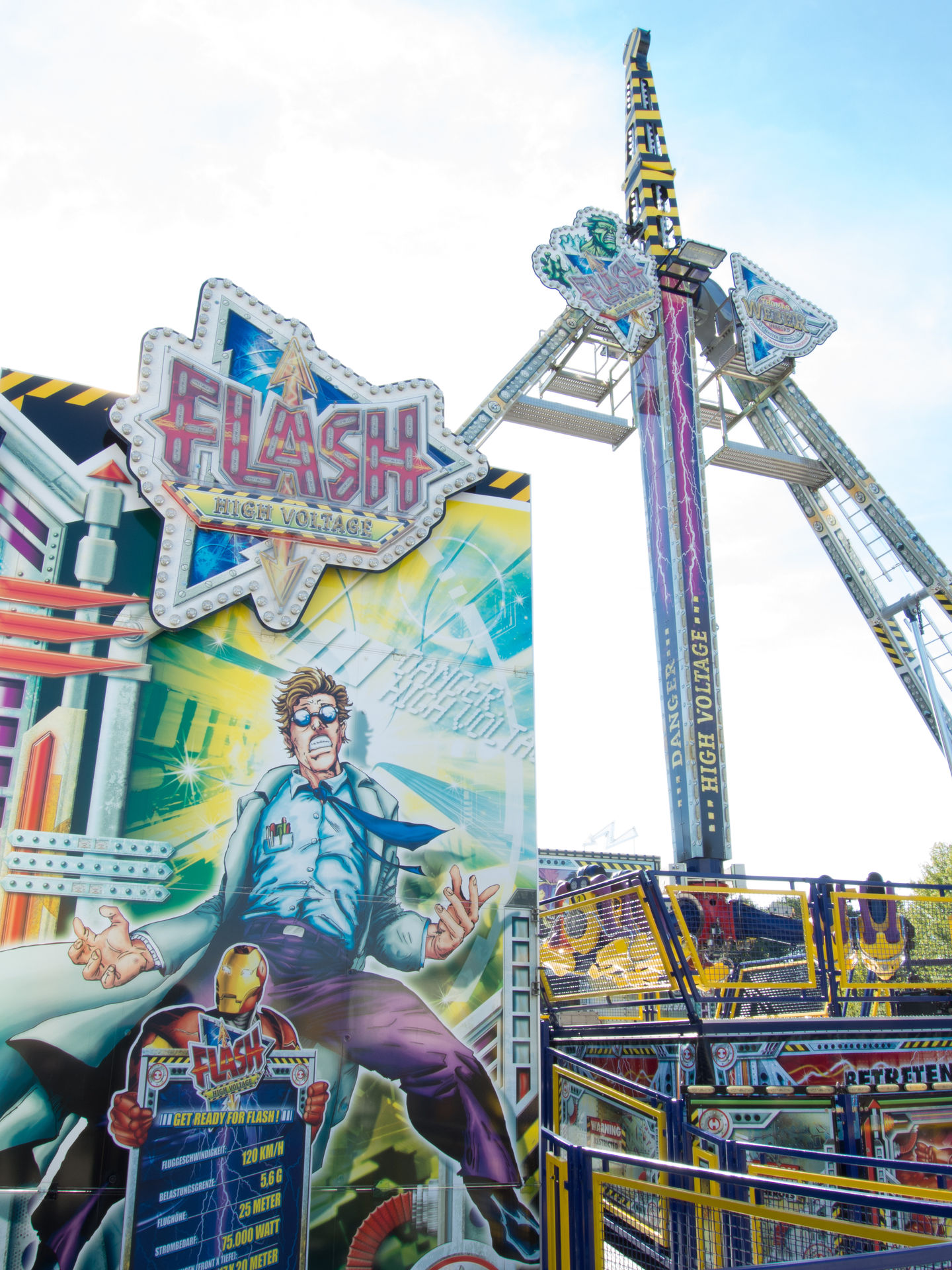 Aus meiner Sicht ist der Inversion eins der derzeit besten Fahrgeschäfte. Zumindest dann, wenn die Maschine richtig betrieben wird. Und das ist beim Flash der Fall. Dazu ist die Anlage auch optisch sehr gelungen, gerade auch durch den großen Bahnhof, auch wenn man die Motive der Folien schon von anderen Geschäften kennt.