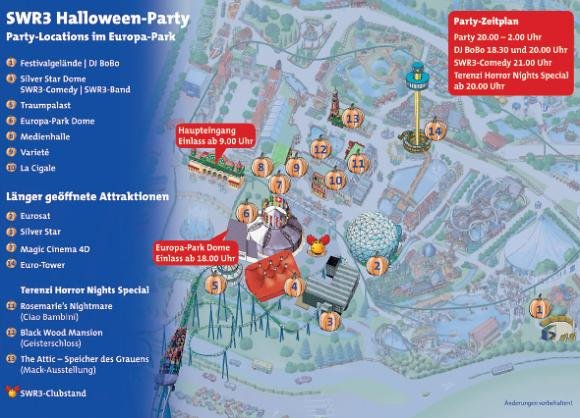 Riesenkürbis auf der SWR3 Halloween-Party im Europa-ParkGruseln, Ablachen, Tanzen, Feiern, Achterbahnfahren: Am 31. Oktober, der gruseligsten Nacht des Jahres, steigt im Europa-Park in Rust die SWR3-Halloween-Party mit einem monstermäßigen Party-Programm. Wer euch wann und wo höllisch gut einheizen wird, erfahrt ihr hier. Nach dem Ausverkauf im letzten Jahr am besten gleich jetzt Tickets sichern!