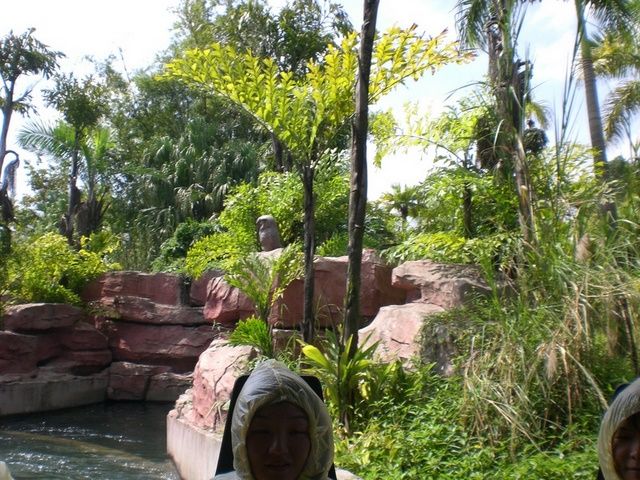 Nachdem mittag schauten wir uns die Stuntshow an. War mal wieder typisch chinesisch. Laut, viel Bum Bum und kitsch drin! Da es mittlerweile wieder drückend heiß war ging es ab zum Rafting. Alle chinesen hatten ihre Regen-Ponchos an und ich fragte mich wieso die sowas bei einer Rafting Bahn machen?! Als vor uns Chinesen ohne einstiegen und bis auf die Knochen nass wieder rauskamen, kaufte ich mir Sicherheitshalber einen. In China fährt man nicht neben einem Wassefall, sondern durch einen Wasserfall