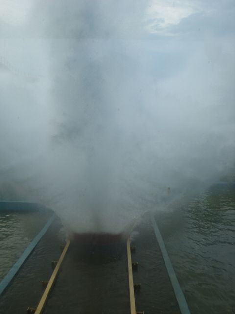 Diving machine! Erste fahrt saß ich in der Front-Row in der Mitte. Ich sag nur eins, geil geil geil!!! Der First-Drop geht einfach nur ab und versetzt einen in einen Adrenalin rausch! Auch der 2te drop in das Loch bringt nochmal nervenkitzel. In der letzen Reihe bin ich komplett nass gewesen nach der durchfahrt durch das Wasserbecken.