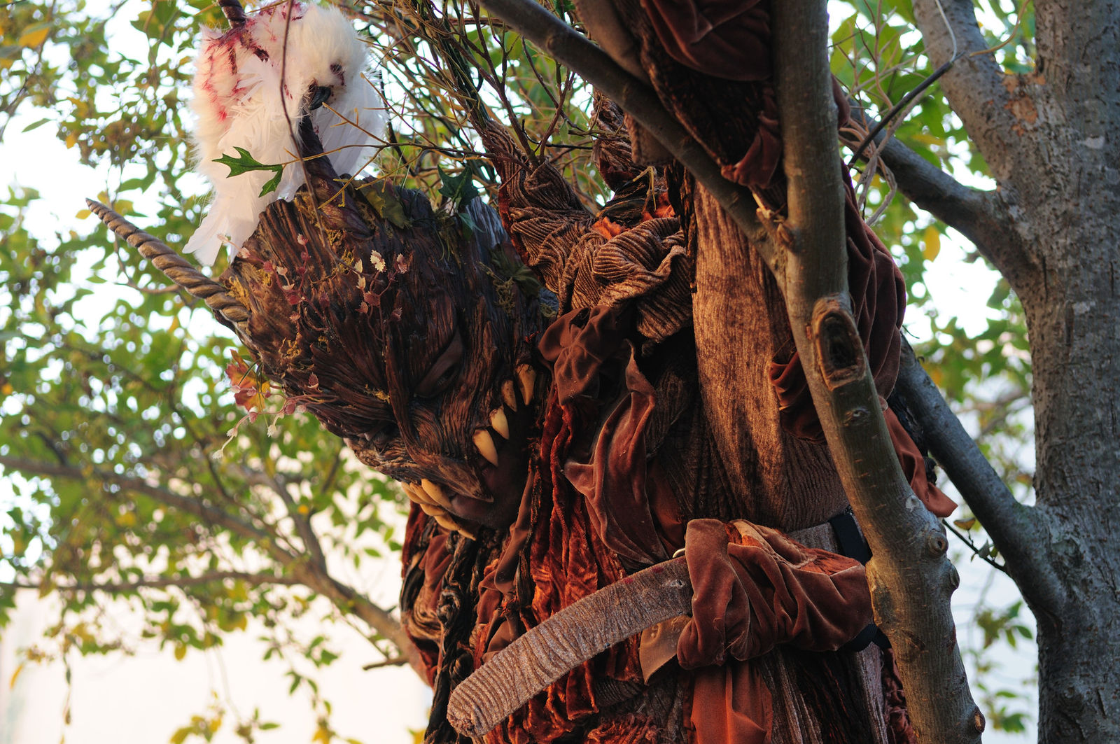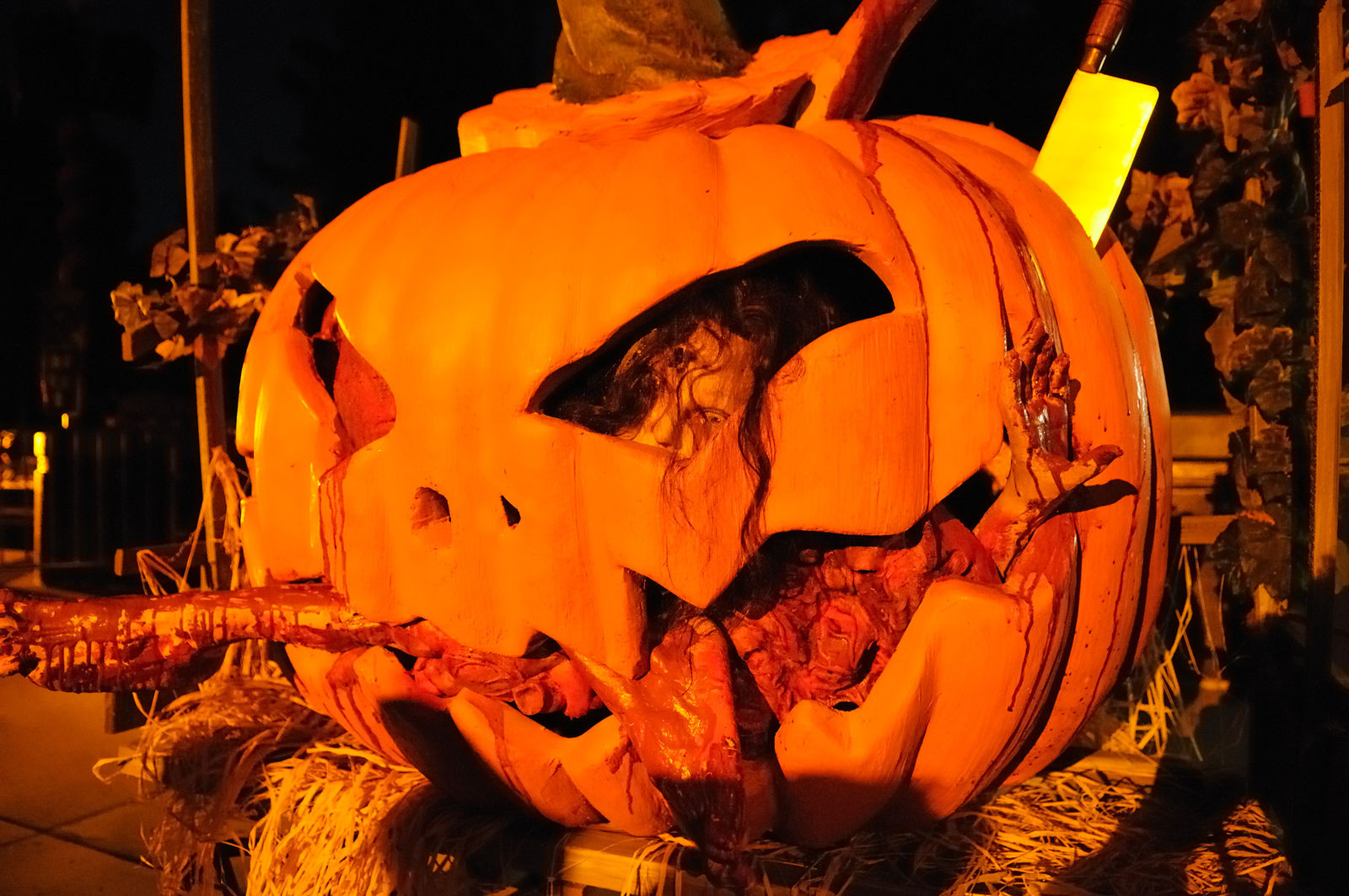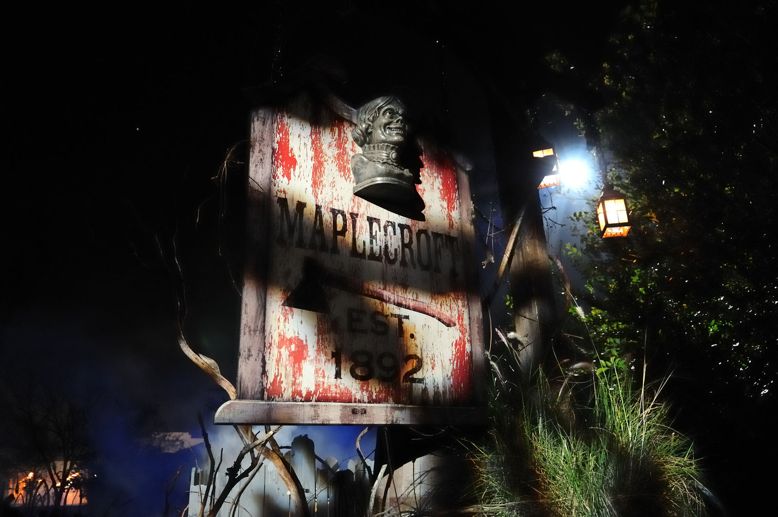 Klar sind die Mazes echte „Kracher“. Mich persönlich haben aber die so genannten „Scare Zones“ noch etwas mehr beeindruckt: Hier werden Teile des Park-Wegensystems sehr aufwändig umthematisiert und mit fantastisch kostümierten und sehr souverän agierenden „Scaracters“ bevölkert. Das beginnt schon im Eingangsbereich im „Path of the Wicked“: Neben gruseligen Stelzengängern schwingen sich hier in unregelmäßigen Abständen Affenmenschen an Seilen schreiend über die Köpfe der Besucher hinweg quer über die Straße – eine riesige Show! Nicht minder faszinierend sind die Darsteller in den „Fractured Tales“: durchgeknallte, blutrünstige Märchenfiguren. Auch toll: das herrlich verrückte „Asylum in Wonderland“. Neben den Darstellern beeindrucken die Gruselzonen auch durch die gelungene Gestaltung und stimmige Beleuchtung. Teilweise sorgt auch die pure Masse für heruntergeklappte Kinnladen, so z.B. bei den Hunderten beleuchteter Kürbisse in „The Skoolhouse“.
