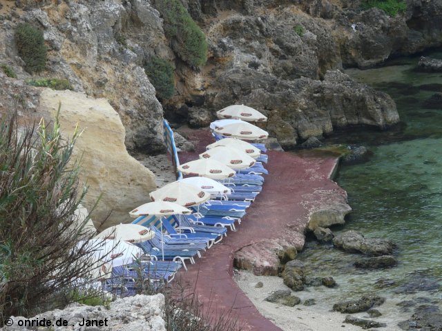 Der Park liegt oberhalb von einer Bucht. Über Treppen kann man zum Meer gelangen.