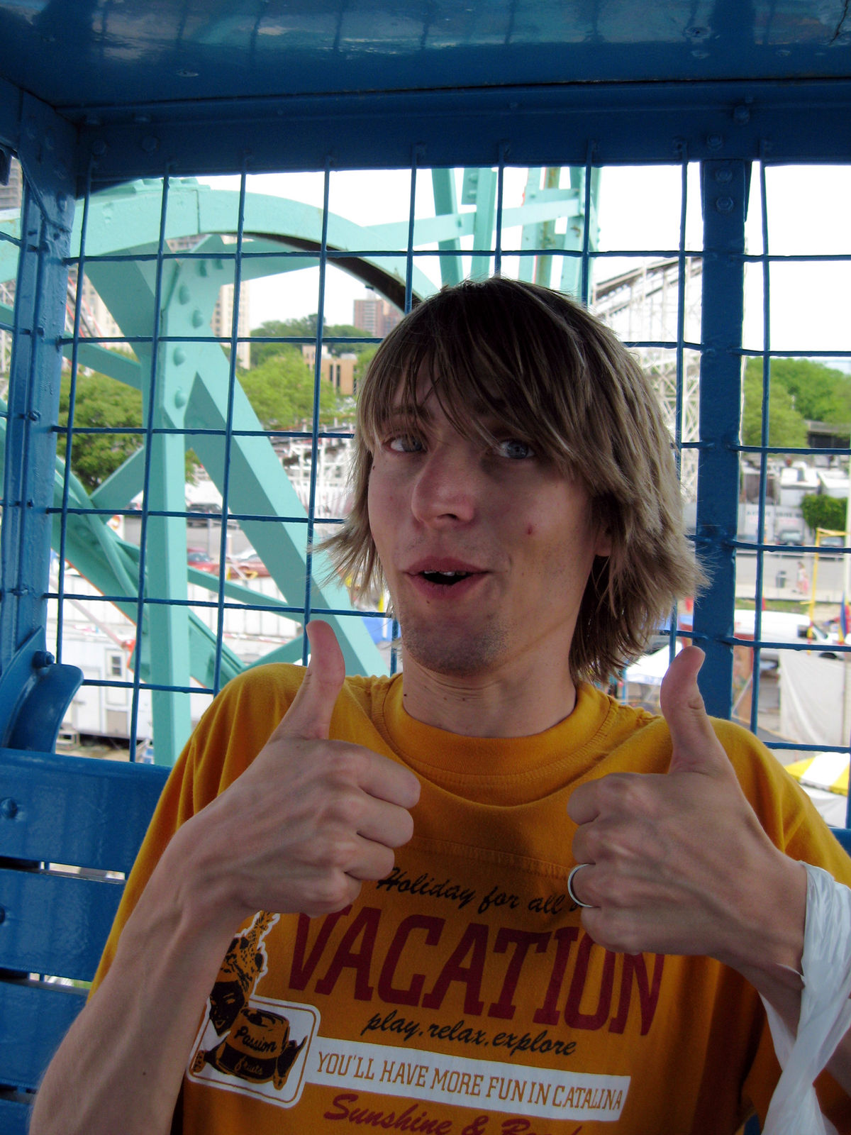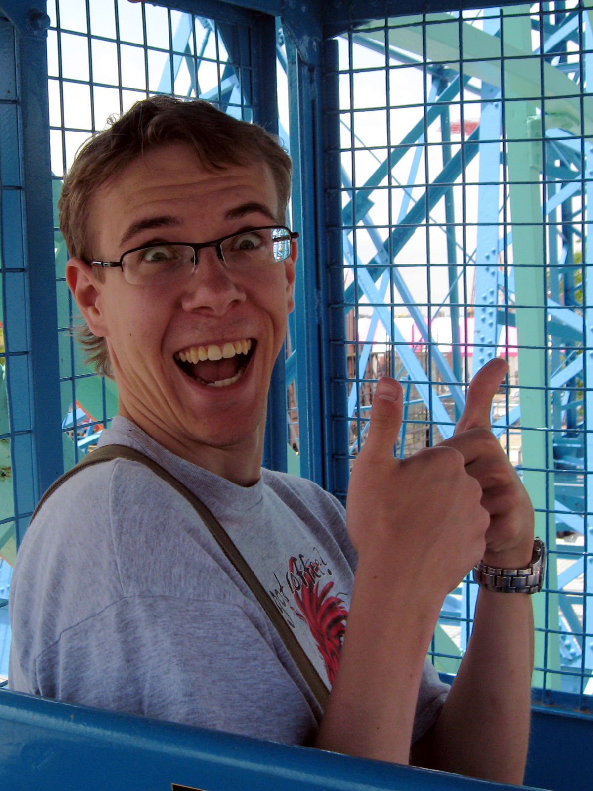 Ich hatte ehrlich gesagt ziemlich Schiss von dem Teil. Ich hab ja Höhenangst und ein einfaches Riesenard ist für mich schon heftig. Wenn dazu noch die Gondeln auf Schienen wie wild hin und her flitzen, au weia! Aber es war auf jedenfall eine Erfahrung und ist jedem zu empfehlen!