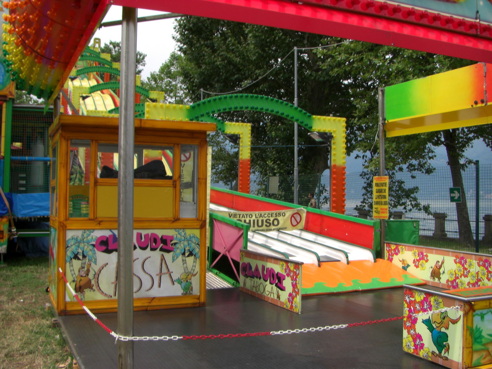 Hi, an unserem Lago Maggiore Urlaub dieses Jahr besuchte ich den Luna Park in Luino, aber leider nicht während der Spielzeit. Da der Lunapark erst Abends um 20 Uhr öffnete und das letzte Schiff zu unserem Ort schon um 17 Uhr fuhr, war ein Besuch während der Spielzeit leider nicht möglich . Dafür habe ich aber ein paar Bilder gemacht, die ich euch nicht vorenthalten möchte. Ich lasse sie einfach mal unkommentiert. Hier sind die Bilder: