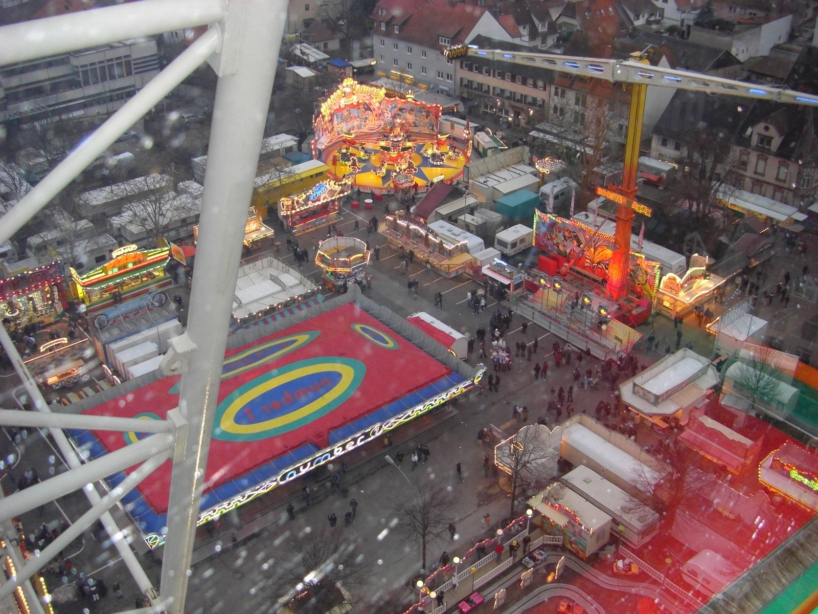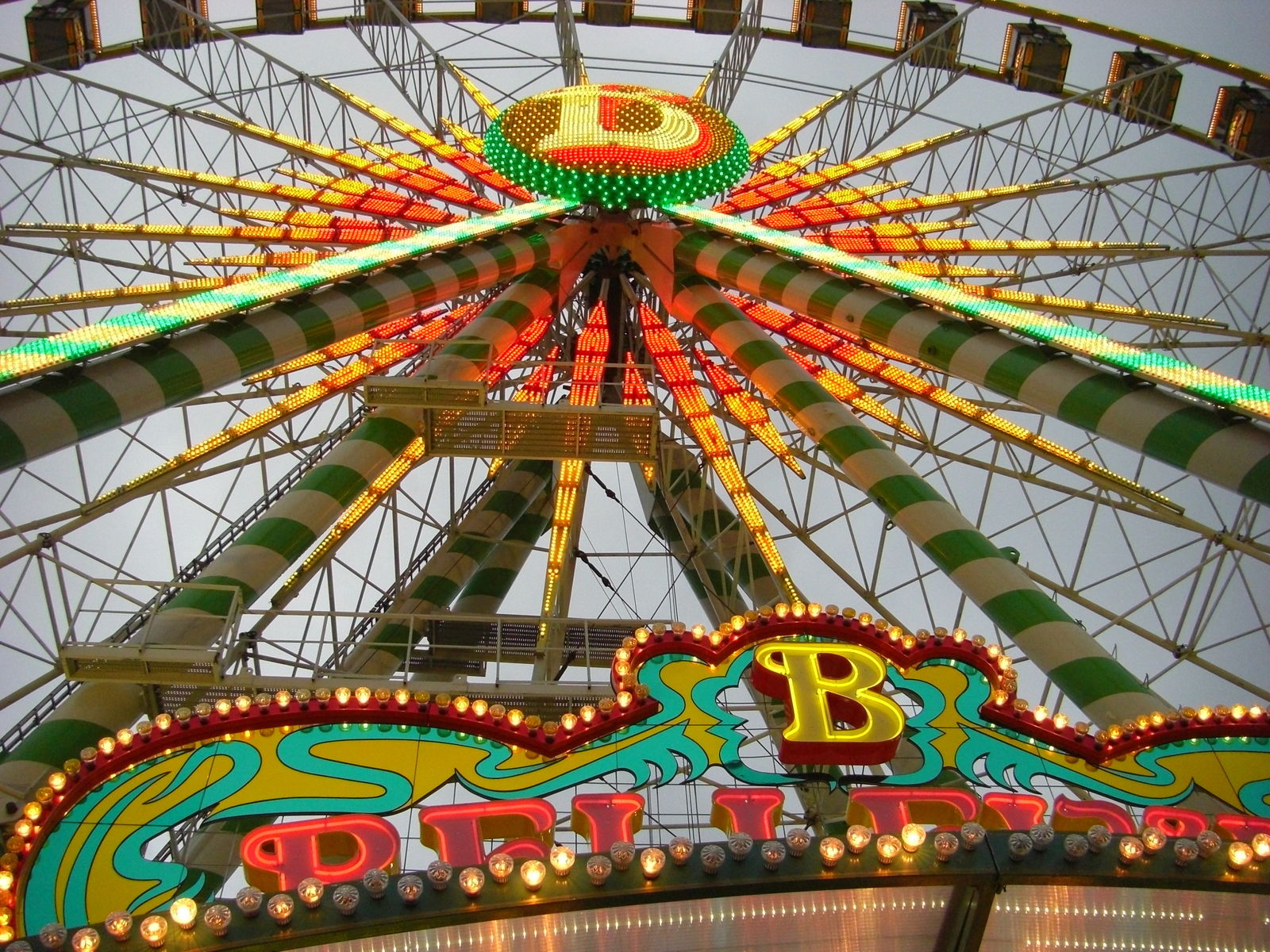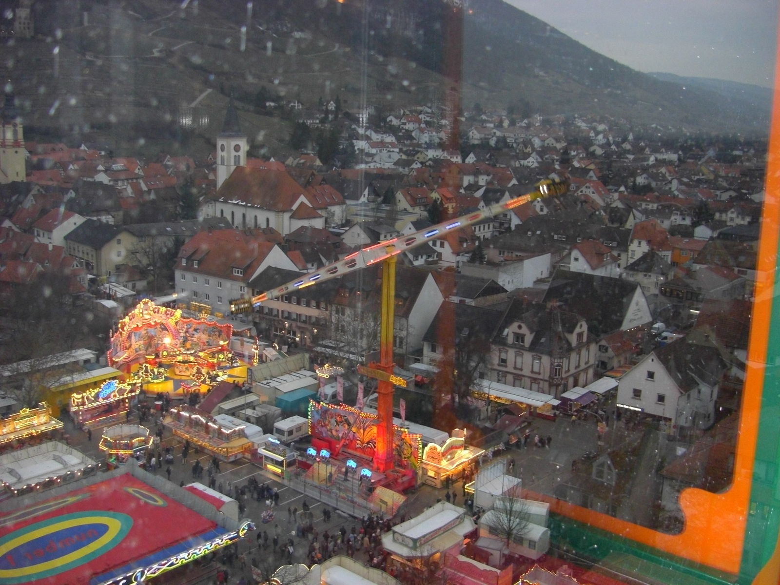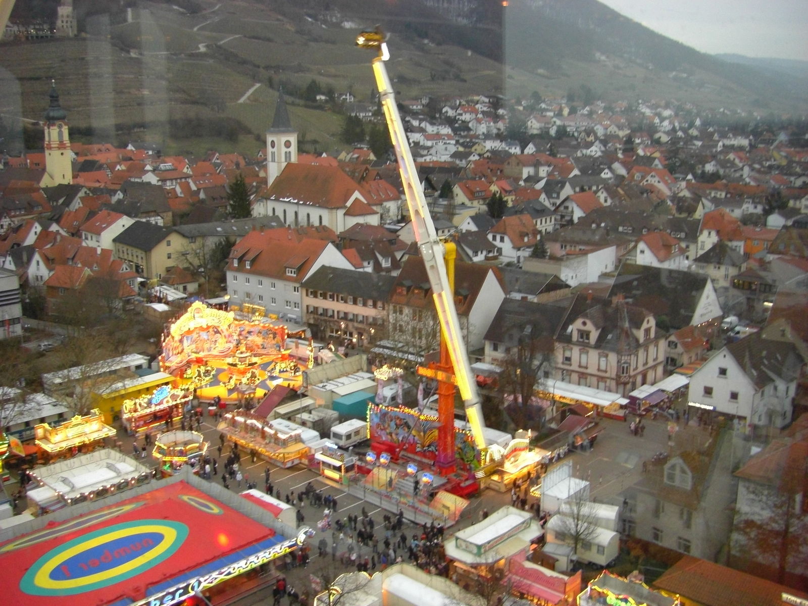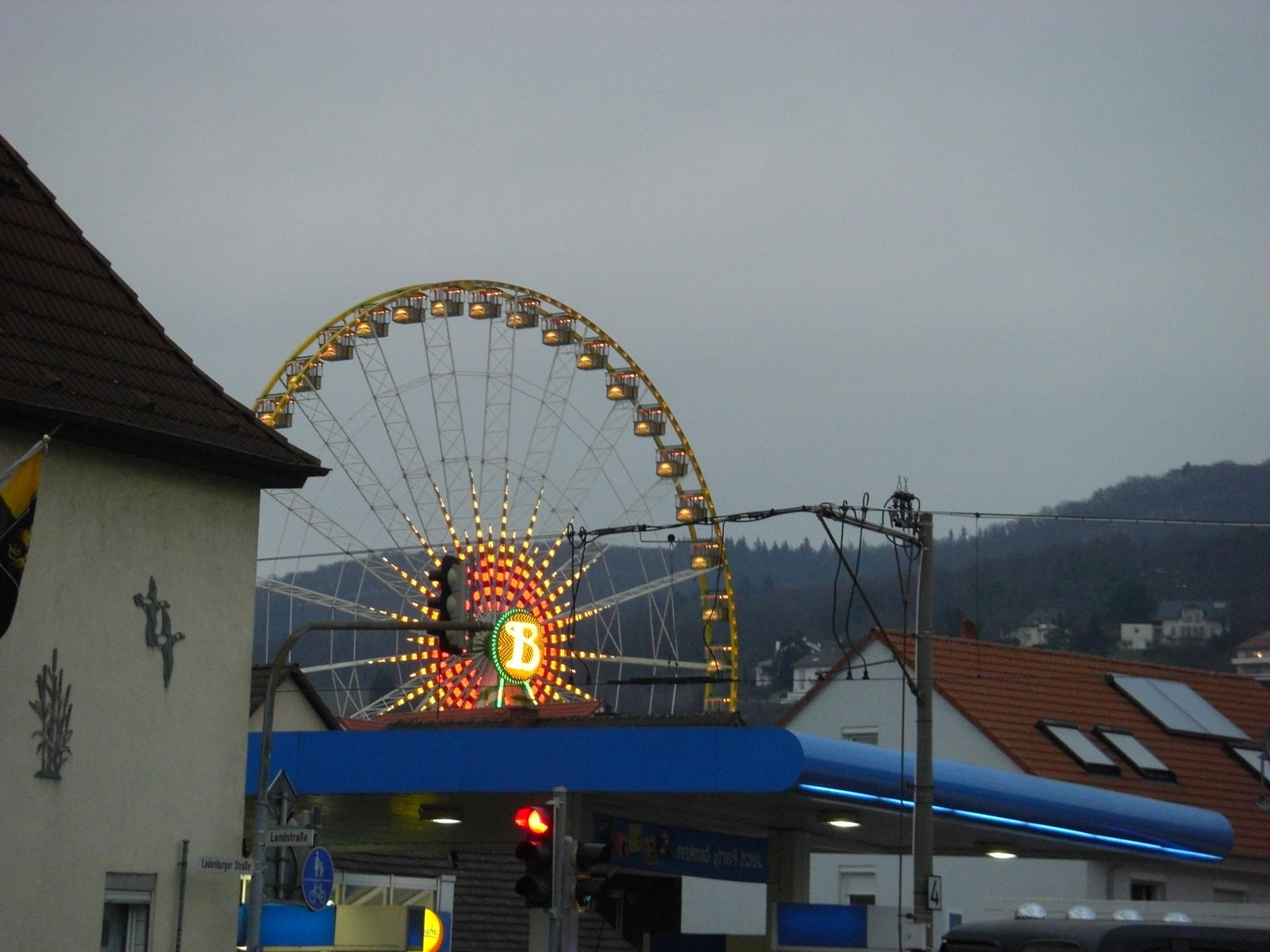 - 1 mal Bellevue von Bruch: Einfach nur schön. Schon vom Rutschenturm im Miramar aus konnte man das Rad erkennen. Je näher man an das Rad kommt, desto schöner wirkt es. Ein richtiger Augenschmaus. Und wenn man dann noch den Ausblick genießt über die Weinberge und den Odenwald kommt man richtig ins träumen. Einfach ein MUSS bei jedem Kirmesbesuch wo das Bellevue steht. Das Rad fuhr mindestens 8 - 10 Runden, fand ich völlig OK. Wer den Blick bis nach Mannheim, Ludwigshafen und Heidelberg genießen möchte, kann das noch bis Morgen tun. Preis: 4,50.