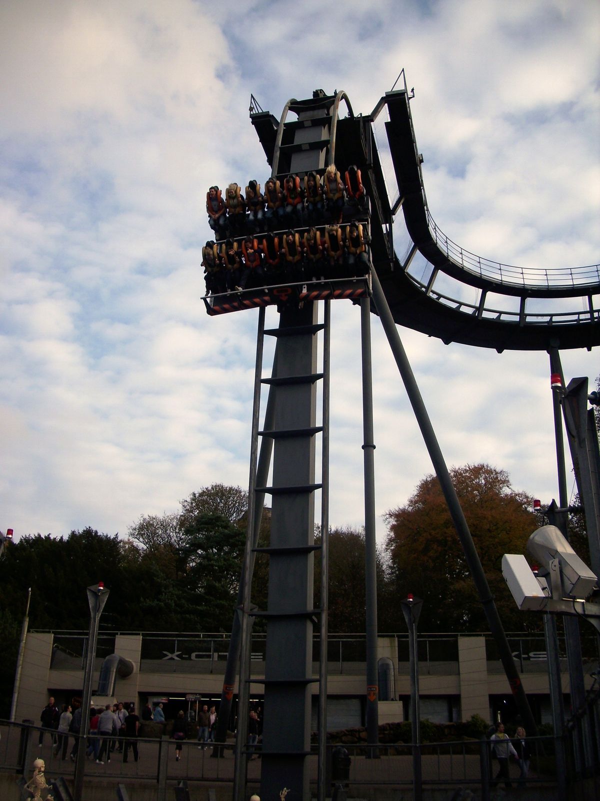Unsere zweite Halloween Attraktion war unser erstes Maze. Nebenbei bemerkt auch das einzige Maze im Park. Die Rede ist von "Terror at the Towers - What lies withhin?". Terror at the Towers befindet sich natürlich Stilgerecht auch wirklich in der Burgruine. Als Wartebereich dient die Parkanlage, das Maze ist dann aber komplet indoor. Zu große Gruppen (ca. 12 Personen) wurden jeweils in den Preshow Raum gelassen. Hier wurde ein kurzer Film über Ausgrabungen in den Towers gezeigt. Grundsätzlich war dieser Film aber nicht gruselig und eine Story für das folgende Maze hat er auch nicht rüber gebracht oder mit anderen Worten, er war überflüssig! Das folgende Maze teilte sich dann in drei Abschnitte. Der erste Abschnitt war eine Art Gruft, in der aber nichtmals ein Scareactor zu finden war. Dafür aber die von mir ach so geliebten Luftkissen. Diesmal in einer von oben Runterkommenden Version, die viel zu weit nach unten ging, sodass man über den Boden kriechen musste. In einem Maze, in dem Mann die Hände auf den Schultern des Vordermannes lassen soll, vielleicht nicht das Geschickteste. Der zweite Teil, war dann wie eine Kirche aufgemacht. Hier gab es auch einige Scareactor. Diese waren cleverer Weise genau wie die rumstehenden Puppen gekleidet, sodass man nie wusste, ob echt oder nicht. Nette Idee, aber leider wurde sie nicht konsequent umgesetzt! Der dritte Part war dann der beste. In Strobo-Licht gab es einen Abschnitt, der mich an the Asylum im Thorpe erinnerte. Dieser war sehr genial, insbesondere auch aufgrund der hohen Anzahl an Erschreckern!