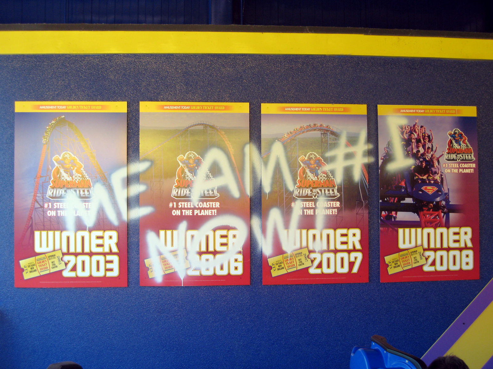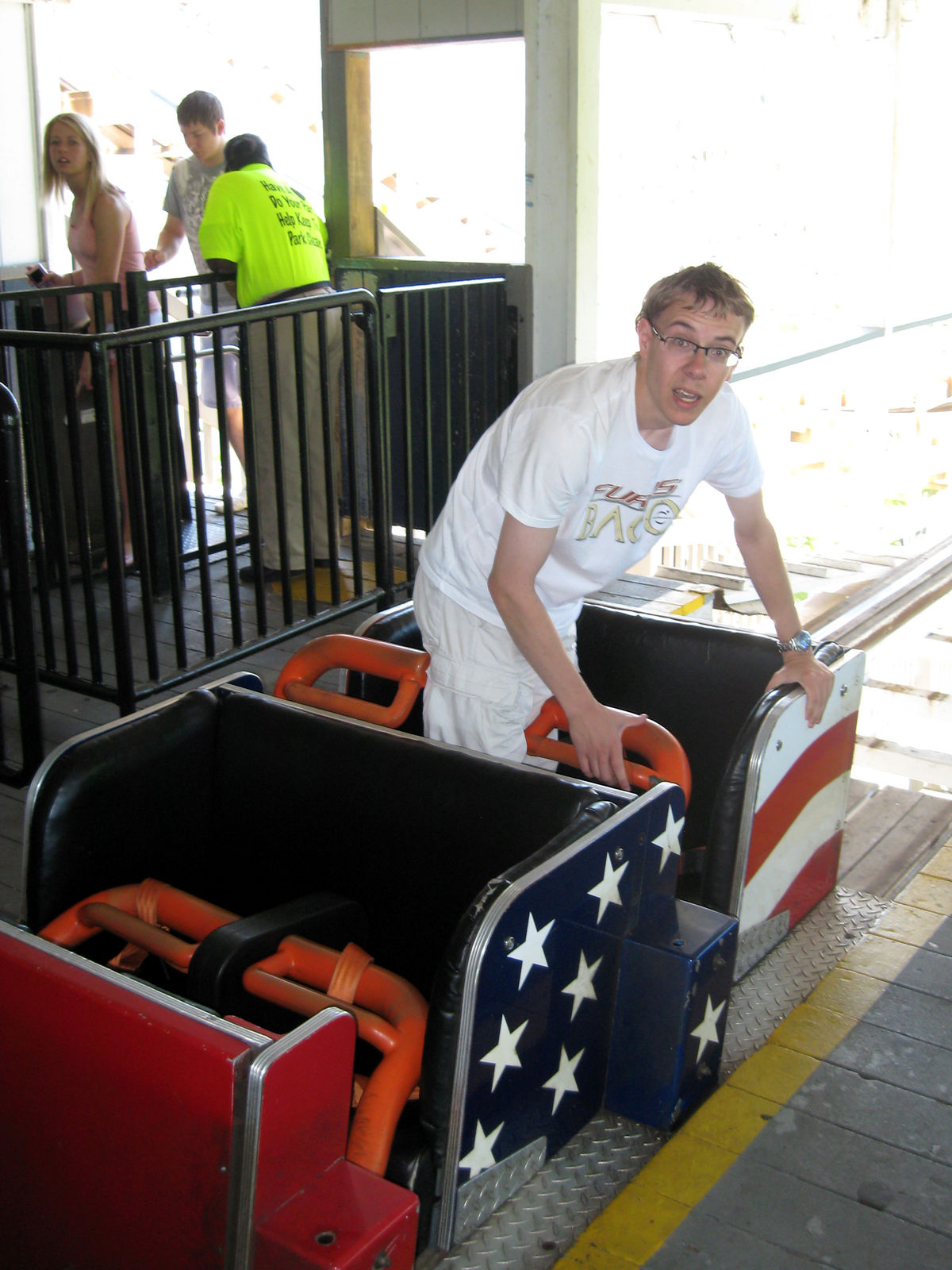 Am zweiten Tag ging es in den ersten Six Flags Park der Tour. Da es einer von sieben sein sollten besorgten wir uns natürlich Season Pässe. Das ganze funktionierte auch relativ gut und nach ein paar Minuten konnten wir den Park besuchen. Doch anstatt wie alle in Richtung Bizzaro zu gehen hielten wir uns links und gingen in den Bereich wo zuerst noch keine Sau war...