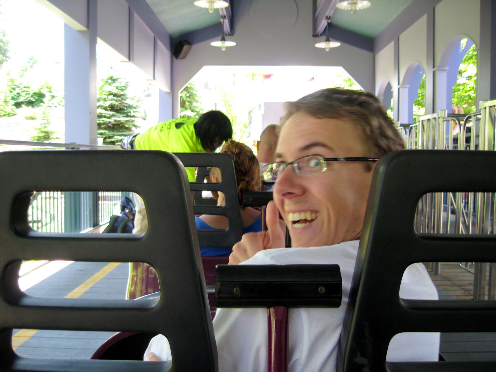 Die Fahr war doch sehr spaßig. Vor allem aber der Ride-Op wusste zu überzeugen mit seinen Ansprachen. Das hatte fast Larvell Jones Qualität! Aber auch wenn die Fahrt spaßig war, es blieb bei nur einer...
