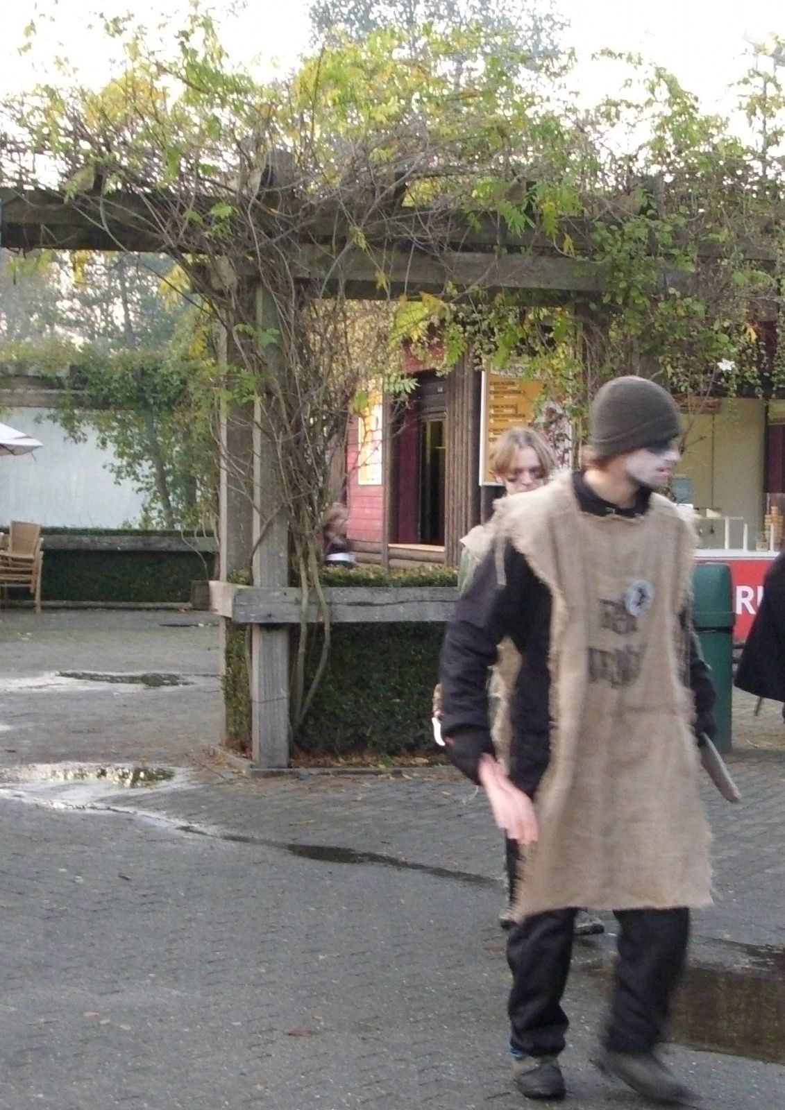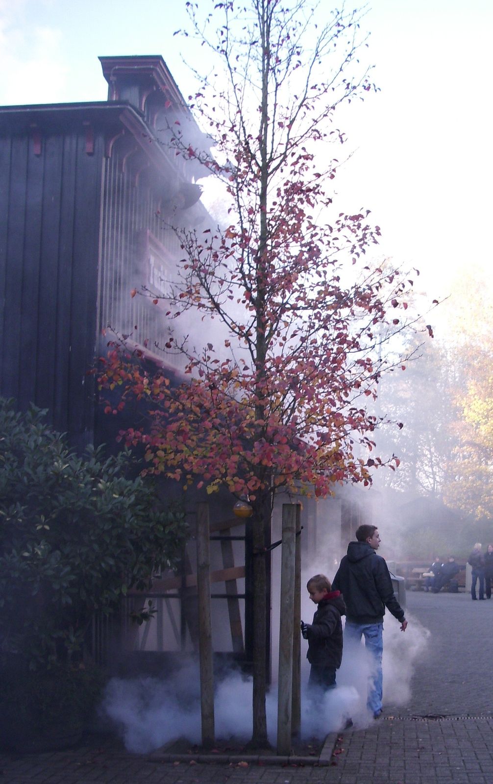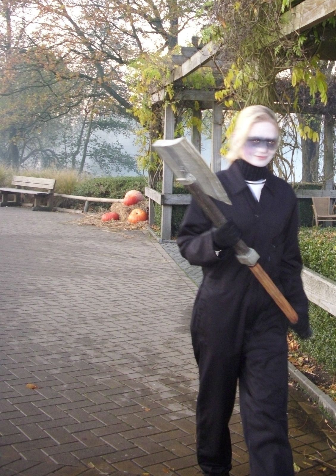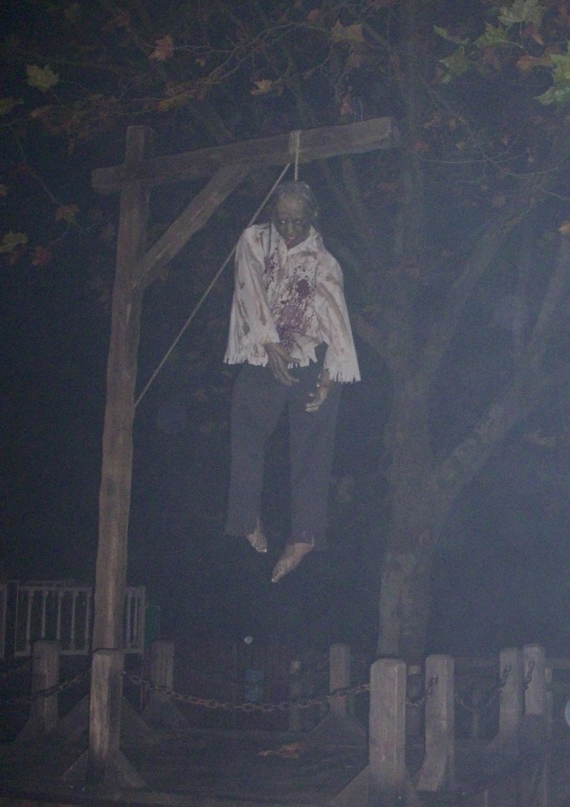 Der Westernbereich war zu einer Scarezone umfunktioniert. Die "Death Zone" war mM sehr stimmungsvoll. Allerdings waren hier nur kurzzeitig Scareactor unterwegs! Westernstädte werden ja gerne für Halloween Umgestaltung, so dass ich sie jetzt mal mit dem Movie Park Version vergleichen möchte. Sicherlich auch bedingt, durch die nicht so breiten Wege, vor allem aber durch die musikalische Beschallung und den Nebel (lag das an der Kälte das der so gut war?) lassen die Belgier den Vergleich gewinnen.