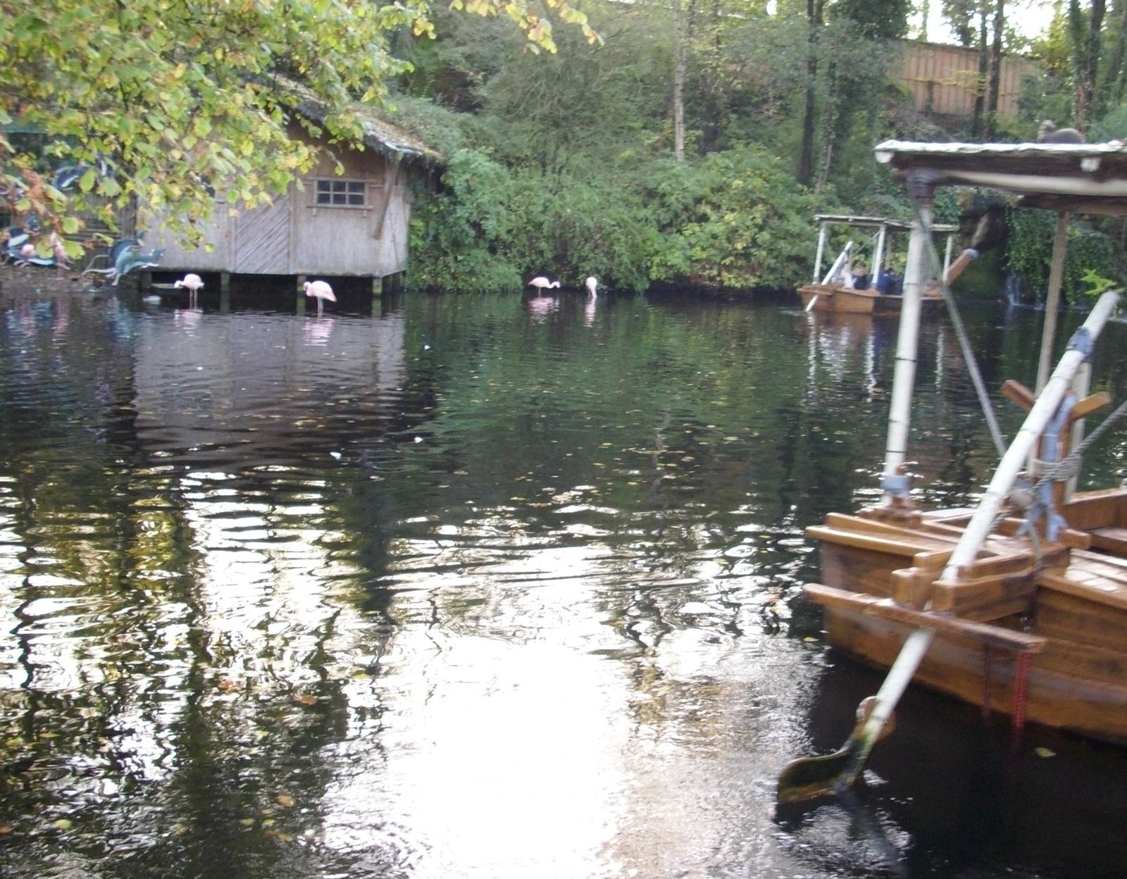 Auch die Bootsbahn Voodoo River war thematisch angepasst. Neben einigen Tieren konnte man auch eine schlechte Halloween Thematisierung erkennen. Zumindest auf den Teilen der Strecke die nicht vom Wassernebel komplett eingedeckt waren. Die Bahn fand ich aber eher schlecht.