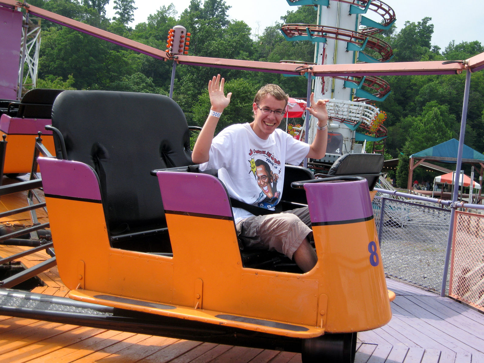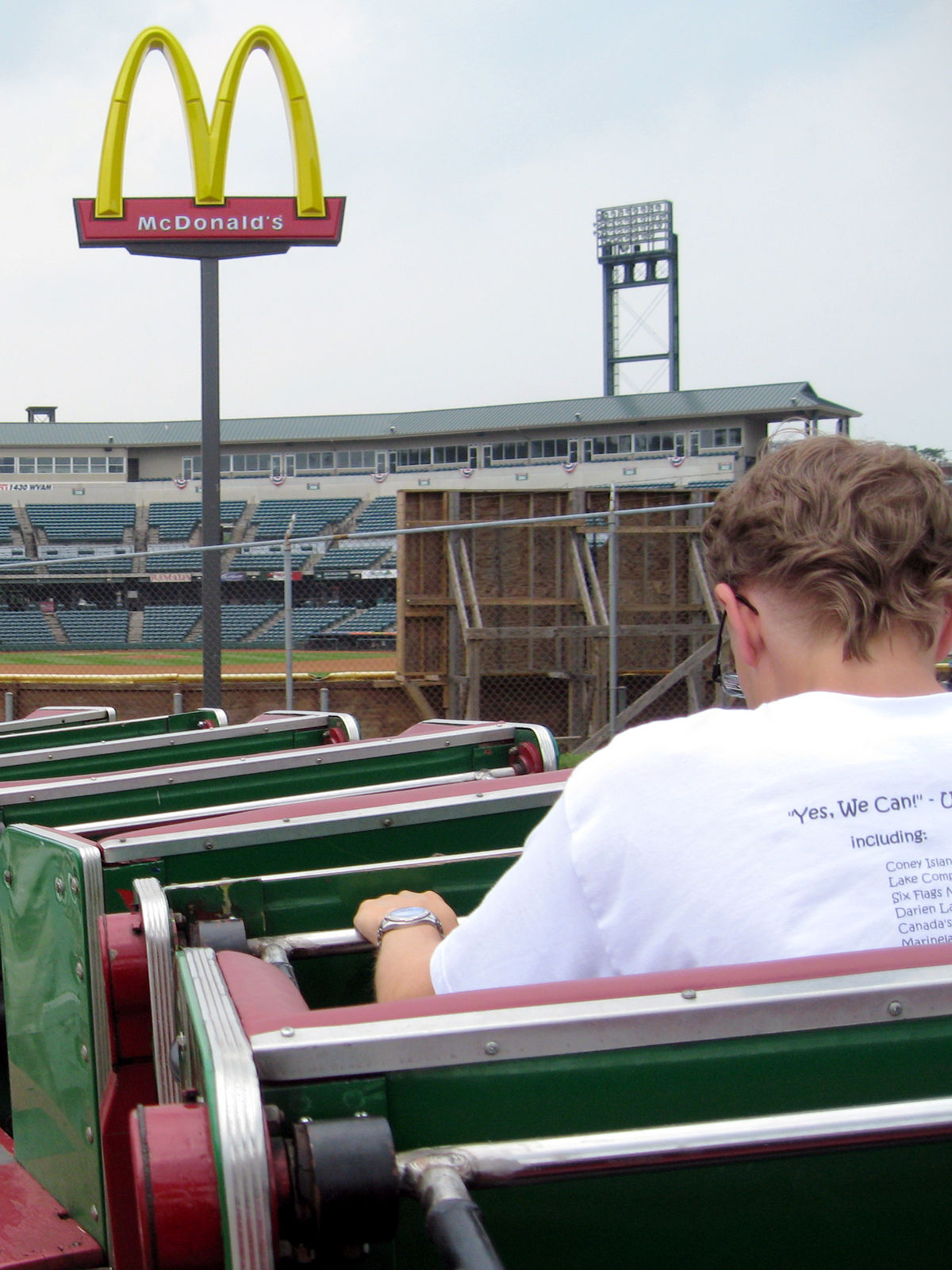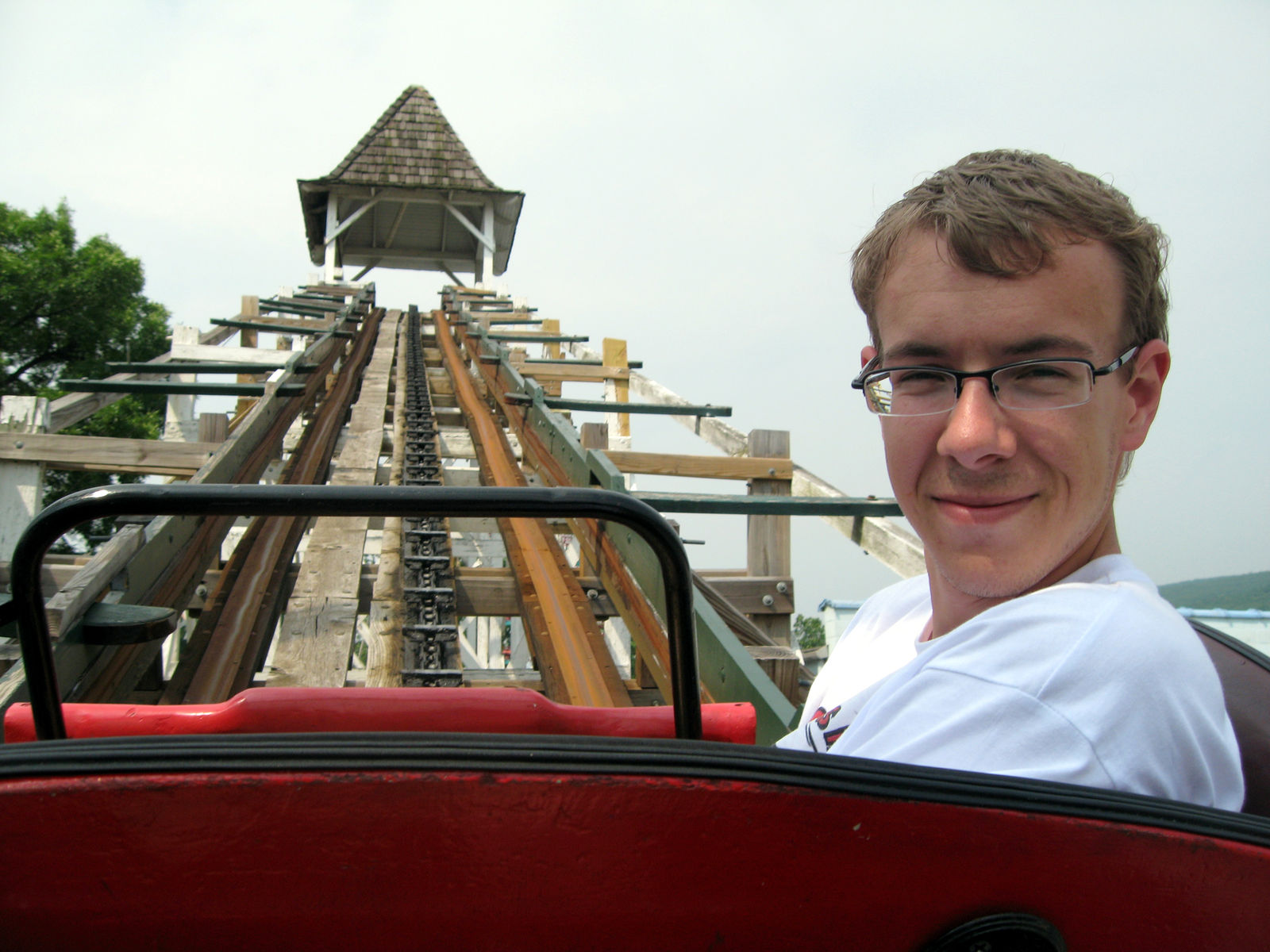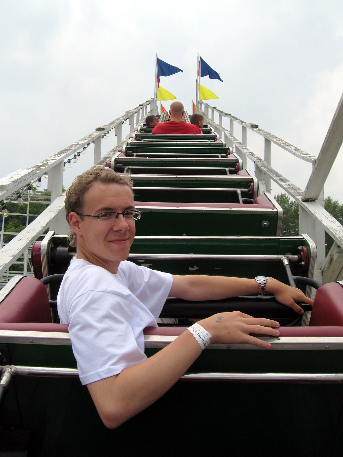 Die Bahn ist ja bekanntlich ein Side-Friction Coaster, und hat somit nach oben keine Sicherung. Folglich rechnet man damit dass die Fahrt eher gemütlich wird. Doch weit gefehlt! Unsere erste Fahrt hatten wir mit zwei typisch breiten Amerikanerinnen vor uns. Somit wurde uns zwar die Sich nach vorne versperrt, aber die zusätzliche Masse zeigte uns was für eine Airtime man auch auf so einer Bahn haben kann. Gegen Ende des Kurses wirkte der Wagen total außer Kontrolle und hob in den "Dips" komplett von den Schienen ab! Ich hätte zu gerne mein Gesicht gesehen... Leider ist die Fahrt zu zweit bei weitem nicht so beeindruckend, aber immer noch sehr schön. Absolut zu empfehlen!