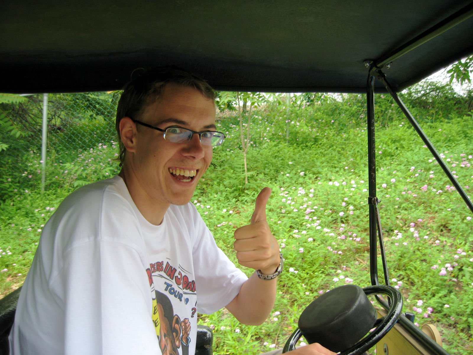Das ganze ist so in etwa eine Mischung von Enterprise, Riesenrad, und Teetassenkarussell. Man zwängt sich in enge Gondeln rein, und sieht vor sich plötzlich ein schickes kleines Rad was nur danach schreit gedreht zu werden. Wenn sich das Teil dann knarzend in Gang setzt und man langsam sich traut mehr zu drehen, fragt man sich auch ob das ganze auch überhaupt hält. Schlußendlich haben wir es etwas mit dem drehen übertrieben und sind beide mit einem schwindligen Kopf ausgestiegen. Aber auch mit der Gewißheit gerade eines der krassesten Fahrgeschäfte gefahren zu sein...