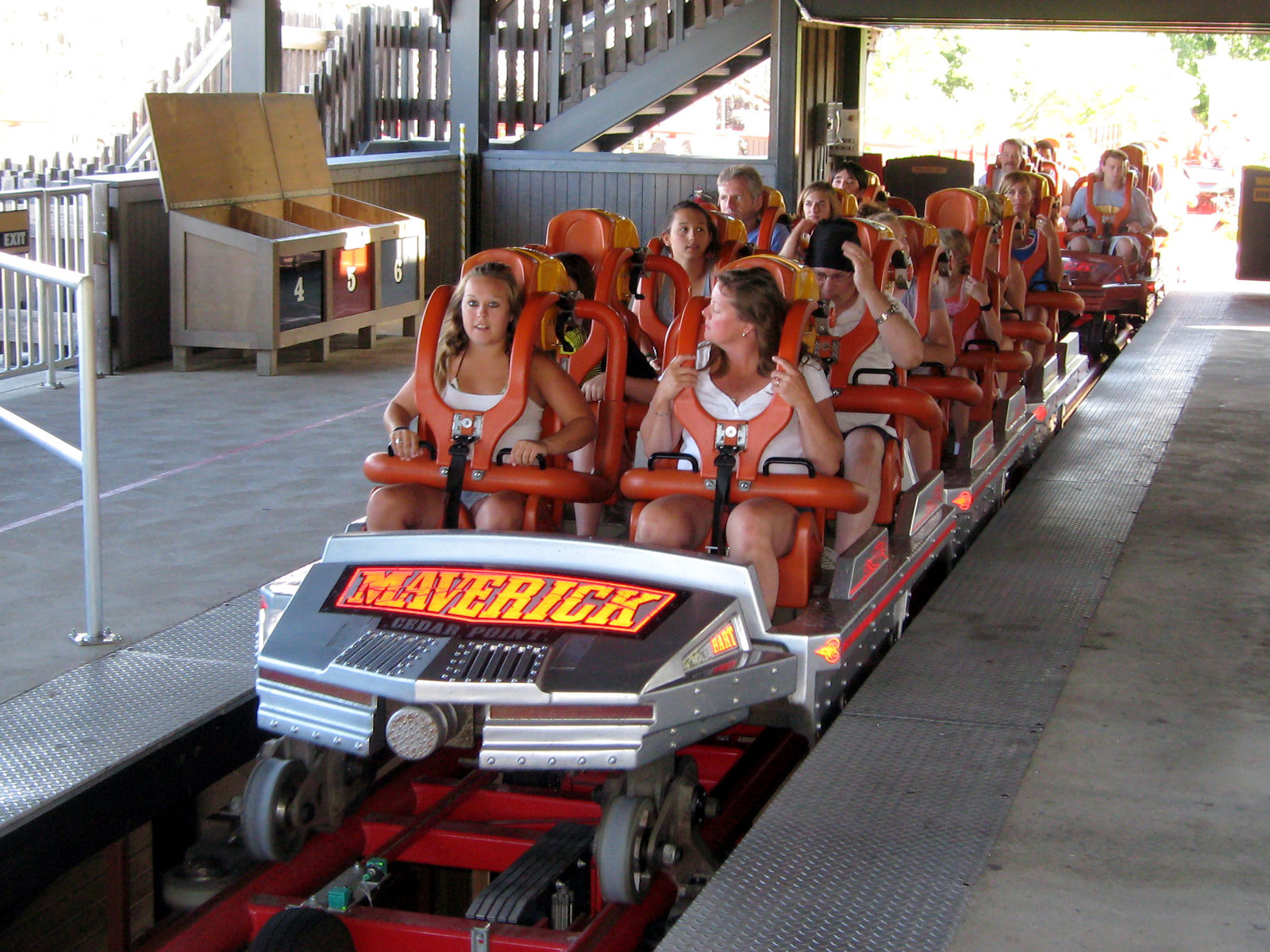 Intamin Schulterbügel. Zwar sind die für mich nicht Schmerzhaft, aber ich liebe einfach die Freiheit von Schoßbügel. Das ist auch der einzige Grund warum die nicht unähnliche Bahn Blue Fire bei mir über Maverick steht. Zwar ist im Park die Millennium Force nach wie vor meine eindeutige Lieblingsbahn, aber ich kann es sehr gut verstehen wenn viele Maverick als die beste Bahn bezeichnen. Absolut top!