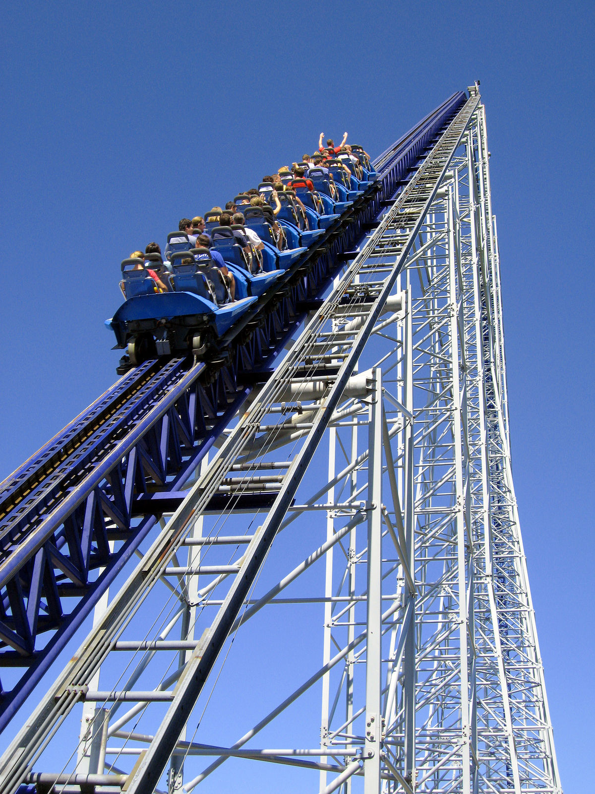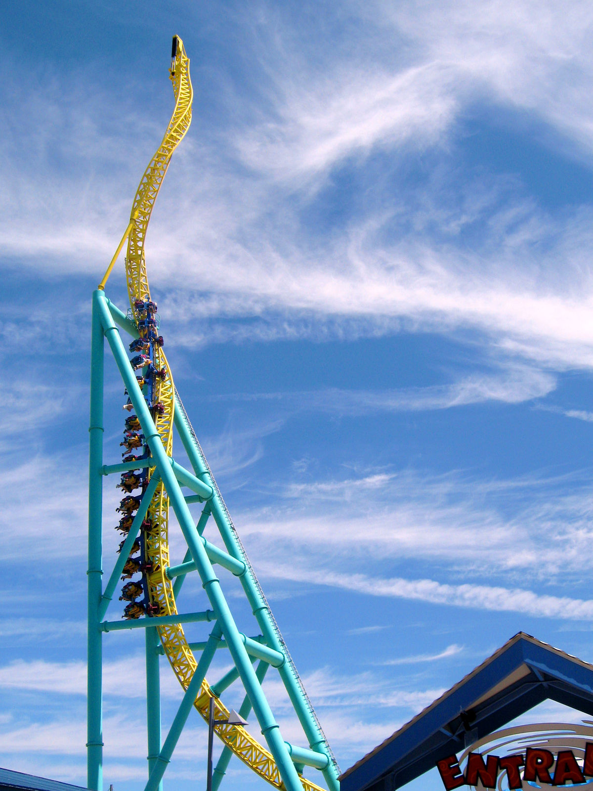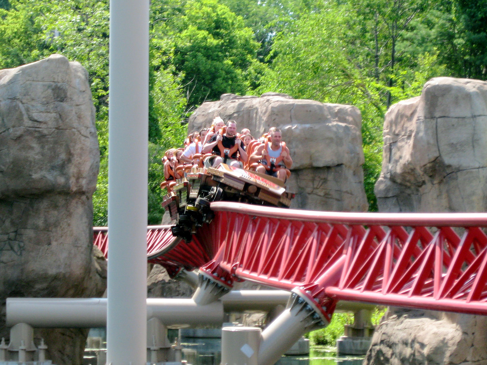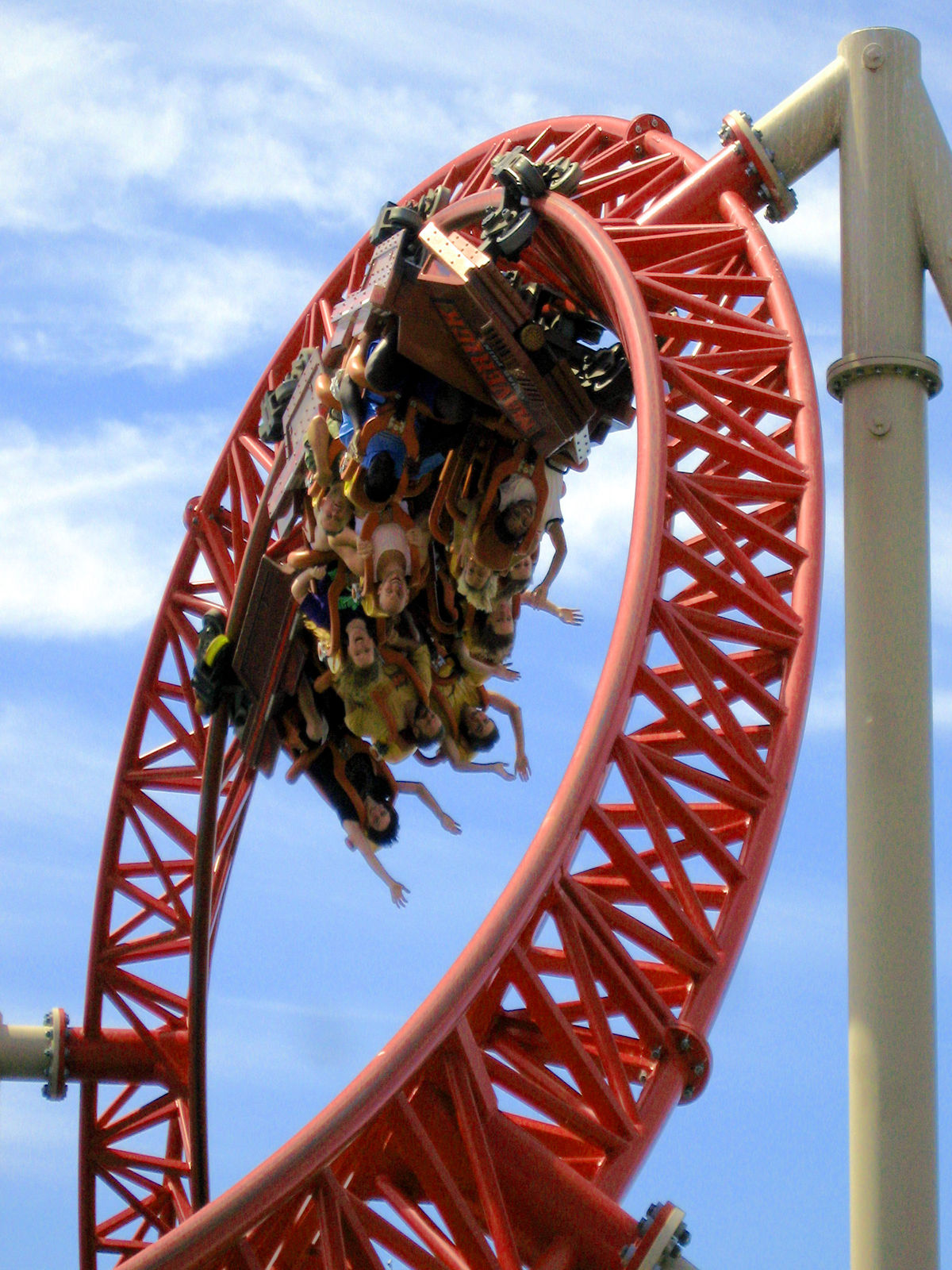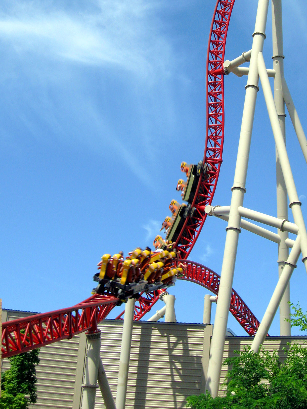 Bei Top Thrill Dragster teilen sich die Meinungen ja extrem. Ich kenne Leute die würden dieses überdimensionierte Phallusobjekt am liebsten heiraten, und ich kenne Leute die finden die Bahn einfach nur strunzlangweilig. Ich tendiere wohl eher zu zweiterem. Trotzdem macht mir die Bahn Spaß, das allerdings eigentlich nur wegen des richtig schicken Abschuß. Dieser zieht natürlich ordentlich und ist gerade in Reihe 1 ein Erlebnis! Der Turm danach könnte man meiner Meinung nach ganz weglassen. Eine lange weite Kurve hätte ich sogar besser gefunden, da hätte ich wenigstens etwas von der hohen Geschwindigkeit, denn von diesem Speed merkt man nichts, man merkt nur die Beschleunigung...