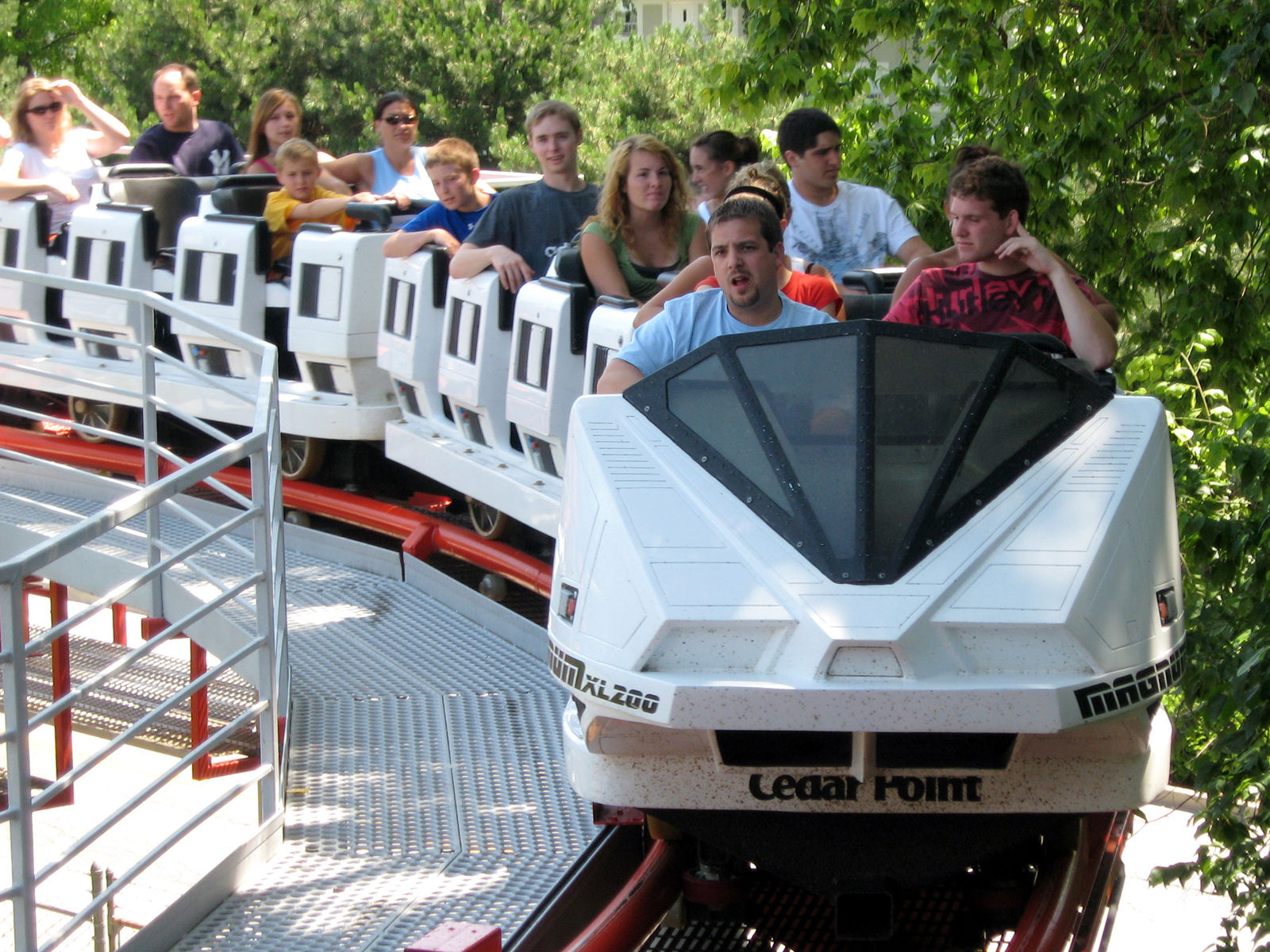 Hypercoaster im alten Stil, das ist Magnum-XL200! Sie war damals die erste Bahn die die magische 200 Fuß Grenze überschritten hatte. Dieses Jahr wurde sie 20 und hat eine kleine Renovierung geschenkt bekommen. Trotzdem darf man sich hier auf keine sanfte Fahrt einstellen. Das Ding ist von Arrow und fährt sich entsprechend. Trotzdem ist die Fahrt immer noch sehr spaßig, und bietet neben einer super Aussicht auf dem Rückweg zur Station eine richtig witzige