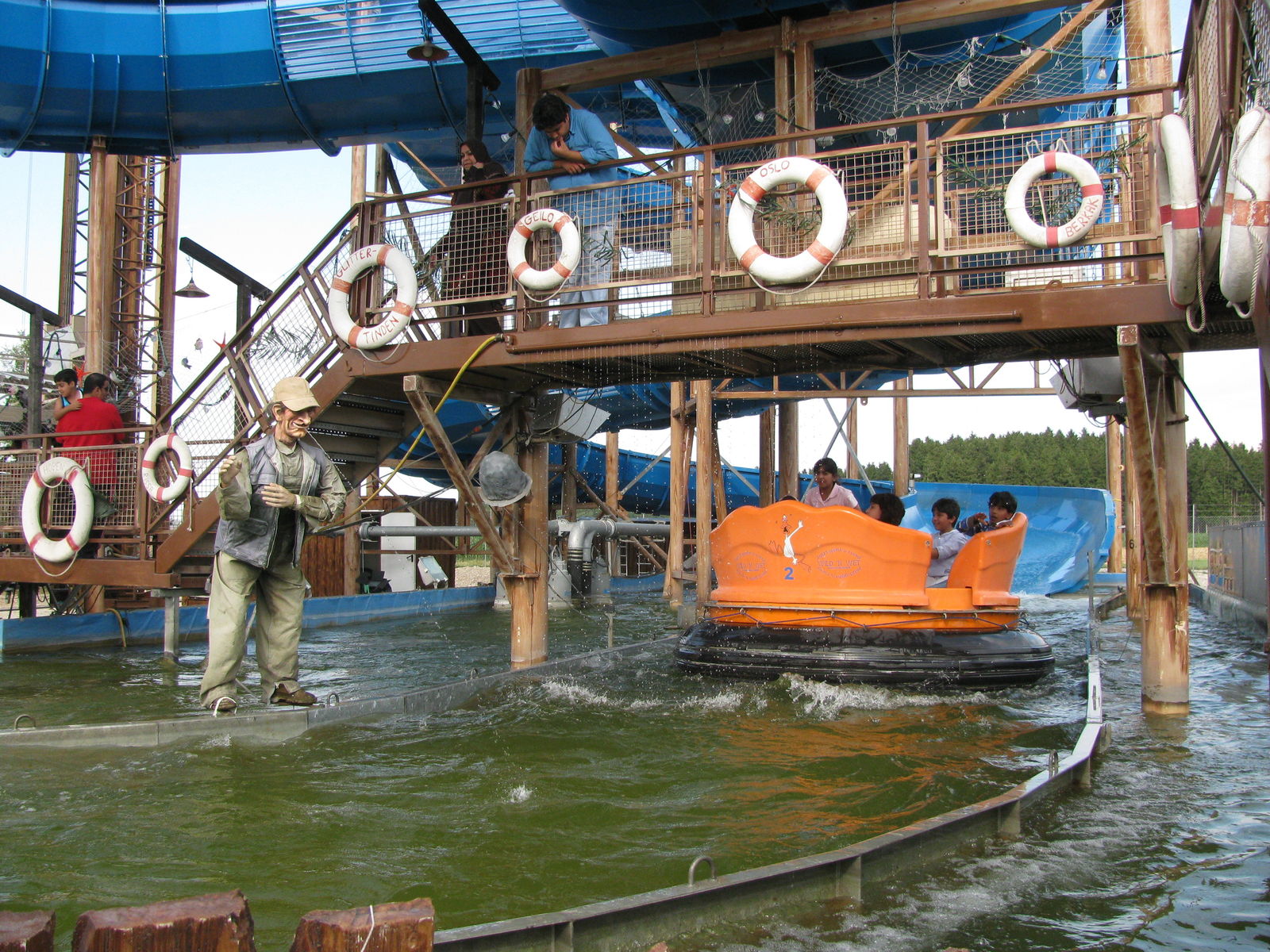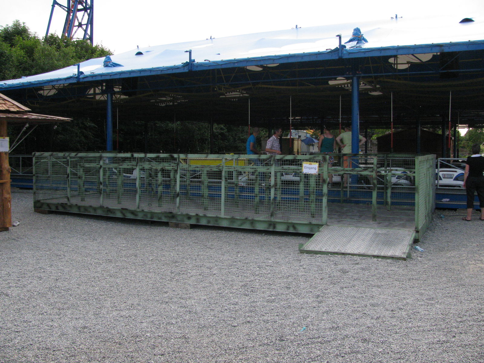 Ich komm gleich zur Sache, die angekündigte Erweiterung von Wild'm Wet hat entweder nicht stattgefunden oder mir ist der Unterschied einfach nicht aufgefallen. Im Prinzip ist es, wie eigentlich zu erwarten war, einfach mal wieder eine gebrauchte Transportable Anlage die so wie sie ist im SLP eine neue Heimat gefunden hat. Das Einzige was sich seit meiner ersten Fahrt vor über einem Jahr auf dem Augsburger Osterplärrer verändert hat war die Drehgeschwindigkeit der Boote. Die Schwarzen Bremsmatten entlang der Strecke wurden entfernt so dass einen hier kein Rafting sondern eher eine trockene Karussellfahrt entlang einer Fahrbahn erwartet.
