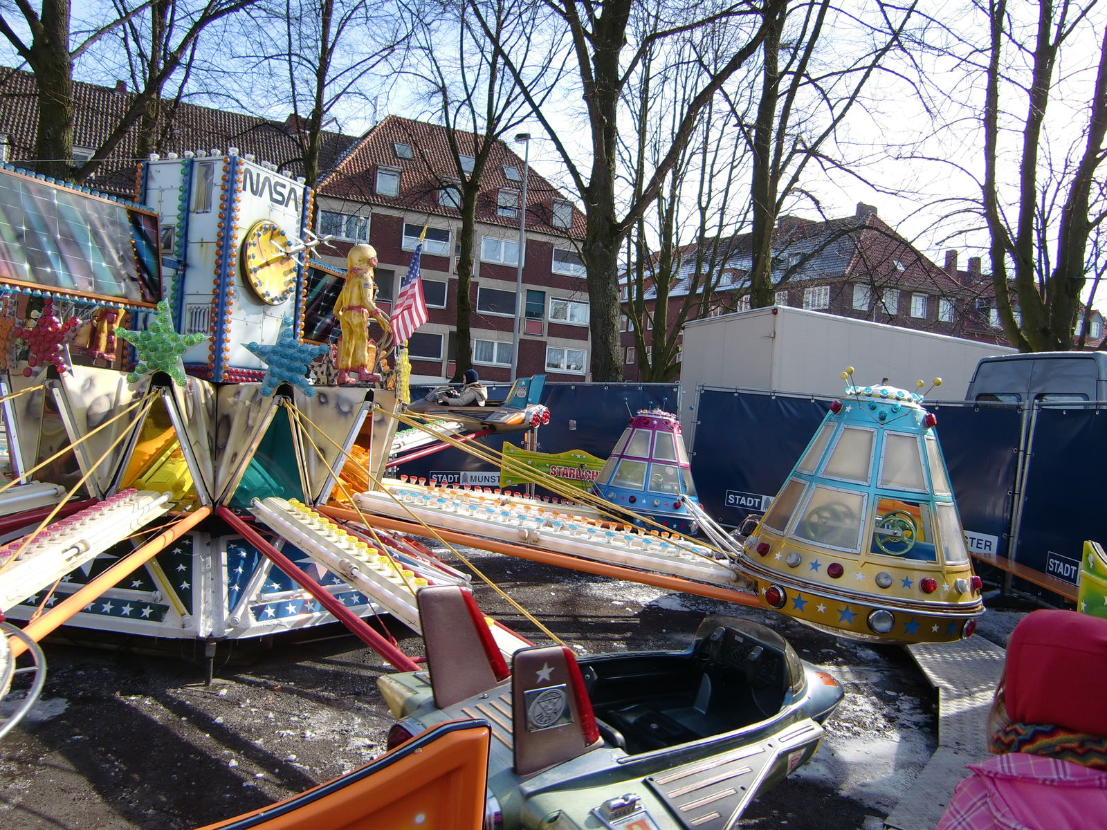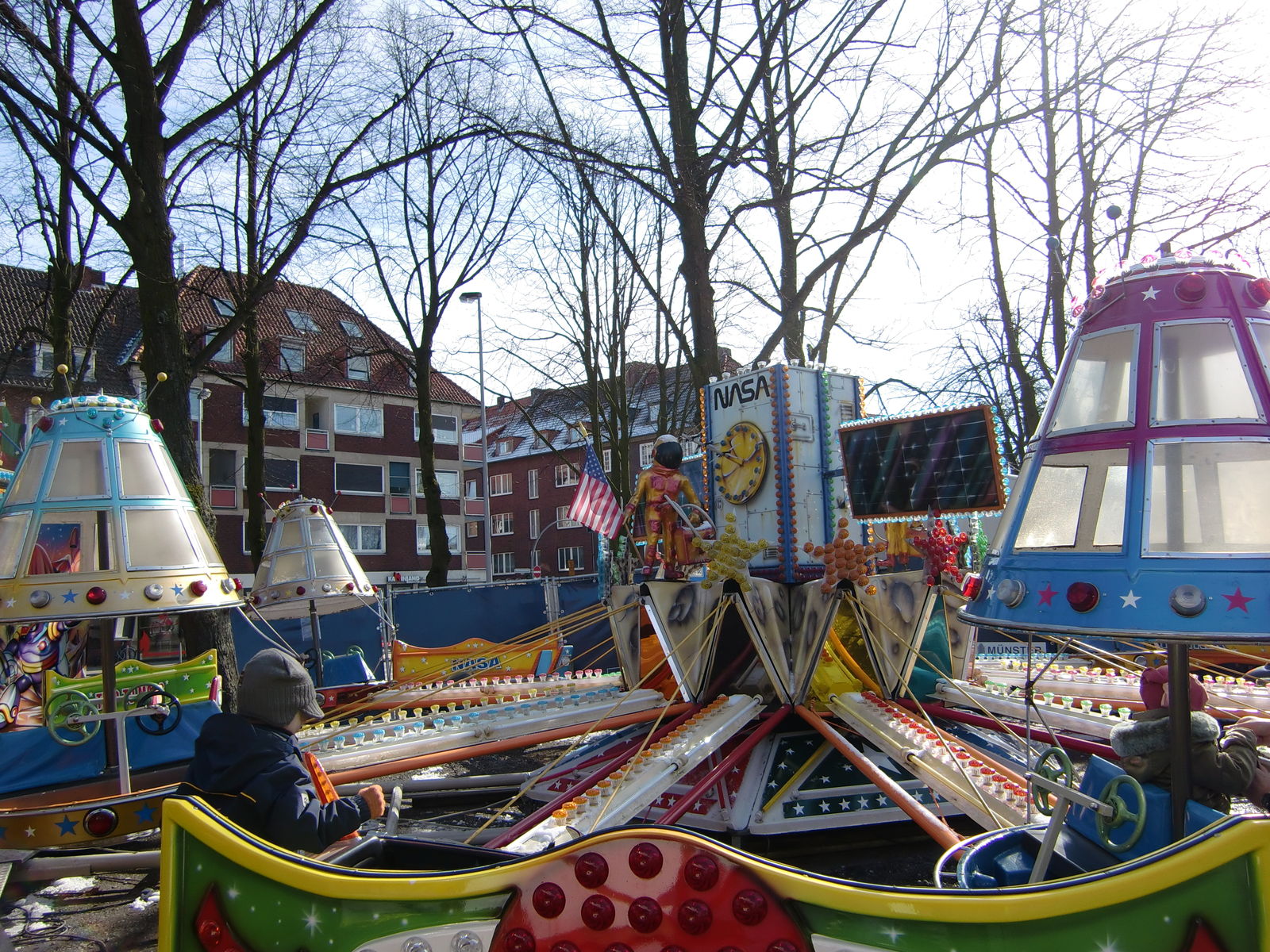 Ich weiß, dass es sehr kalt war in Münster und zudem die Kirmes noch nicht lange geöffnet hatte, als wir dort waren und dass deshalb wahrscheinlich wenige Leute gefahren sind, als ich zugeschaut habe. Da der Platz sich erst richtig füllte, als wir ihn verlassen haben, gehe ich sogar davon aus, dass sich das noch geändert hat.
