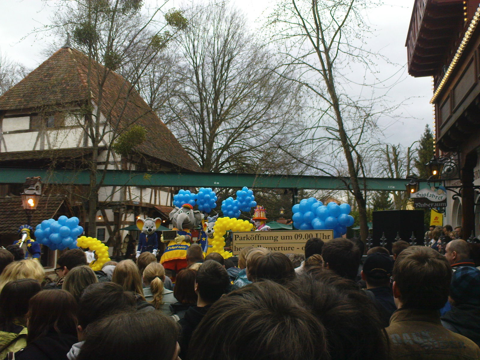 Endlich öffnete der Europapark wieder seine Tore - mit kleiner Feier kurz vor 9:00, wovon ich leider nicht viel verstehen konnte, da die Soundqualität äußerst schlecht war. Immerhin gabs n Countdown - und dann öffneten sich die Tore zur Jubiläumssaison.