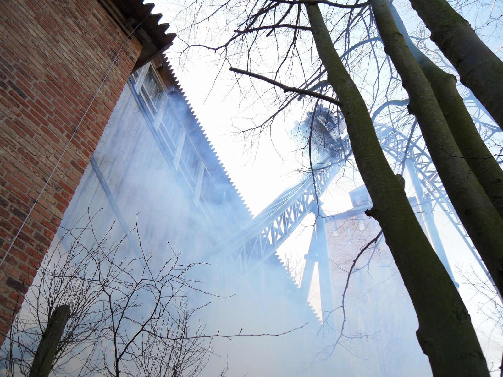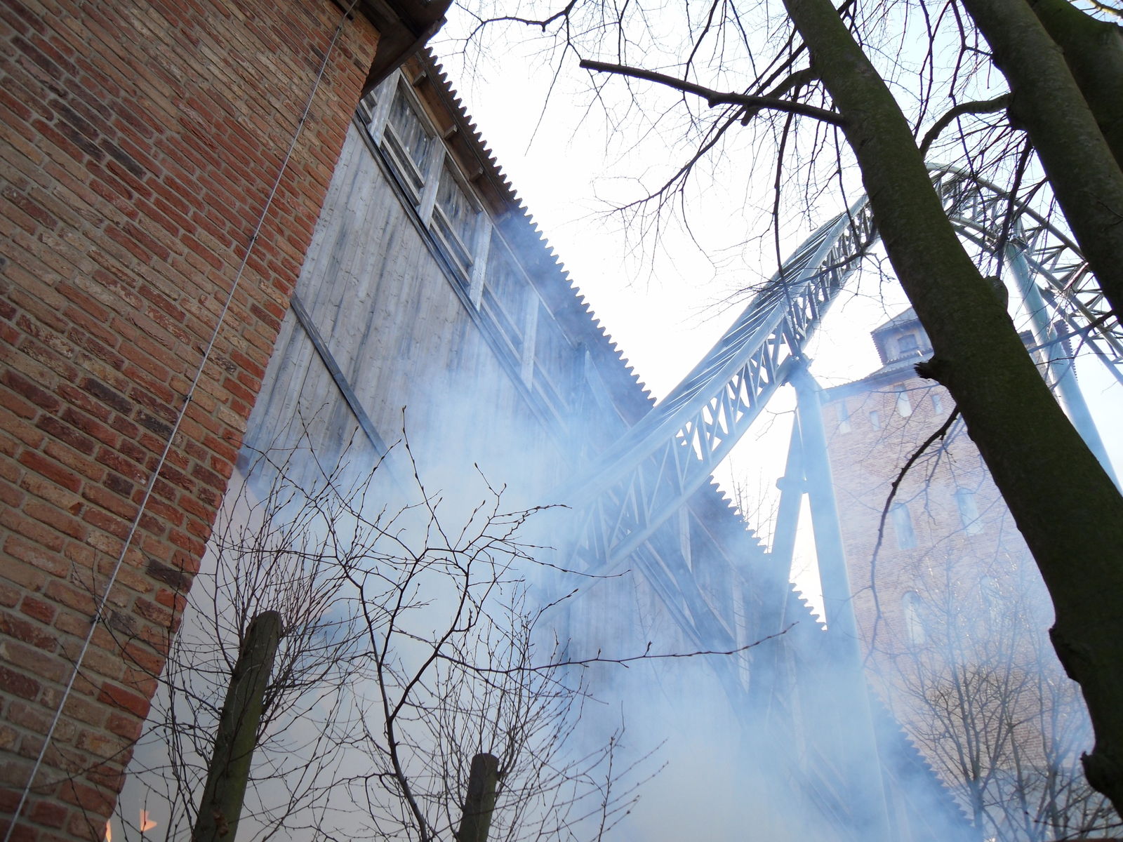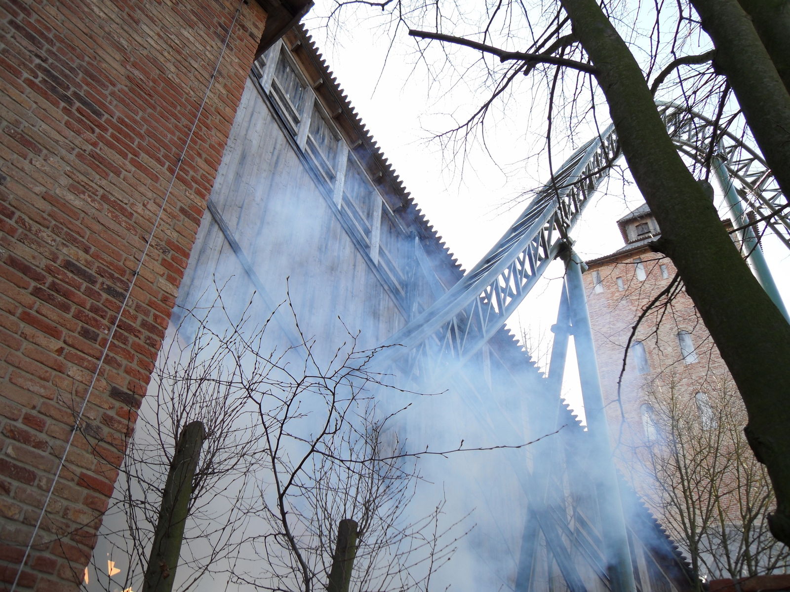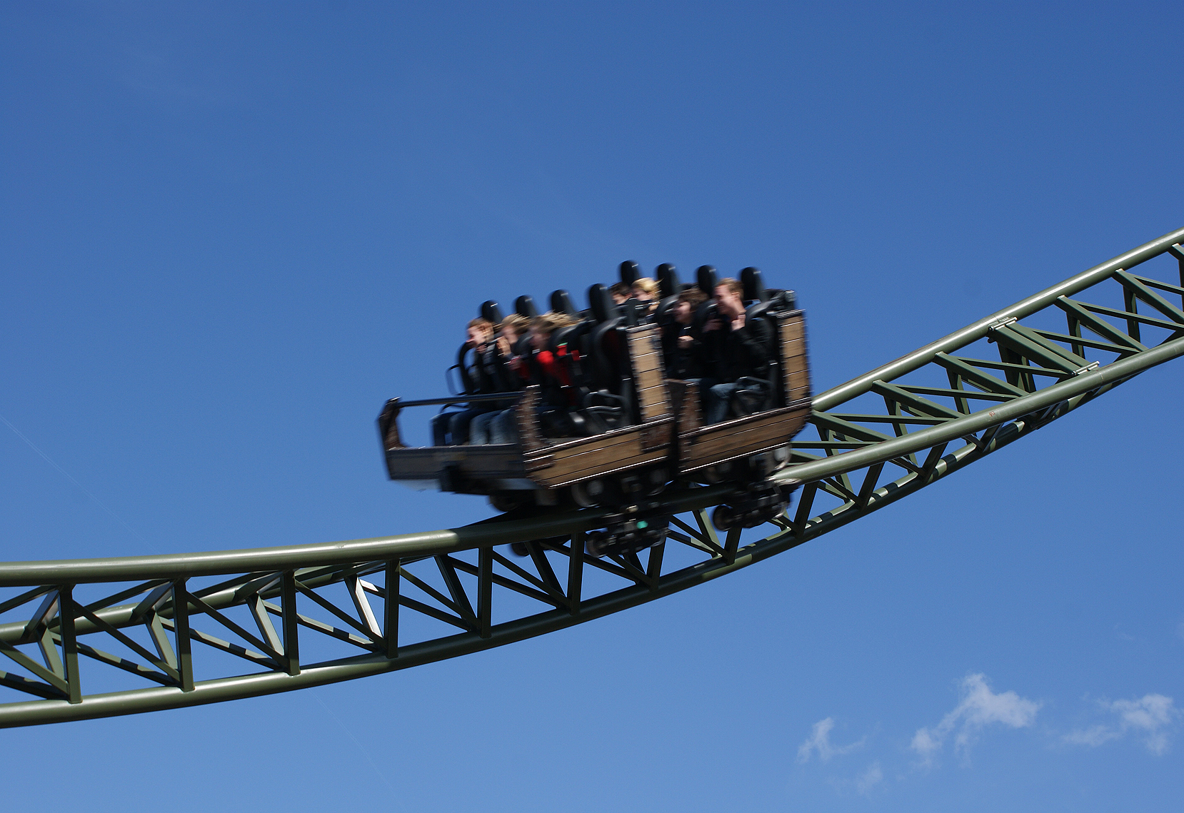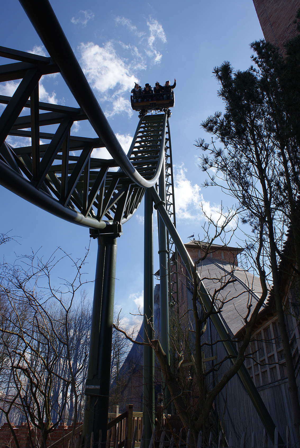 Windzug verursacht, bevor der Wagen in die Tiefe stürzt. In der übergeneigten Kurve im Court Tower