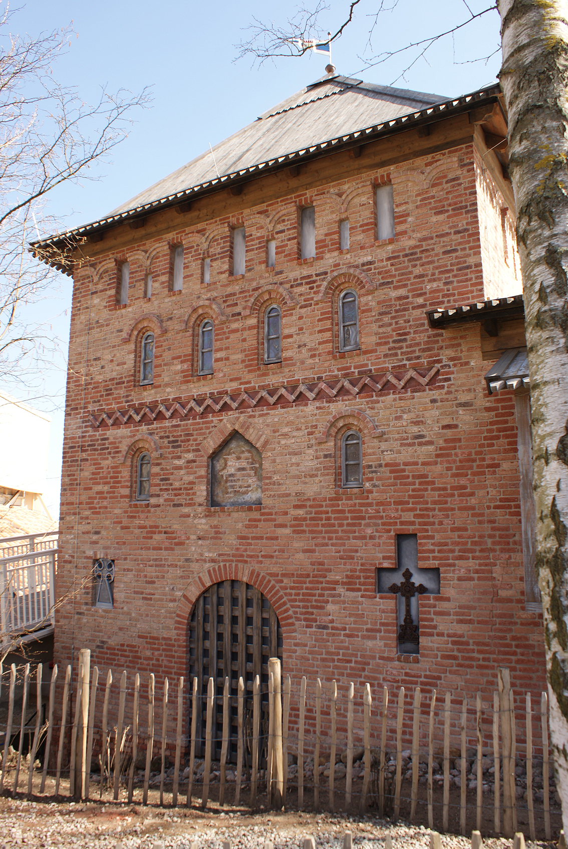 Die Außenfassade des Vladimir-Turms. Hinter der Mauer verbirgt sich die Station mit