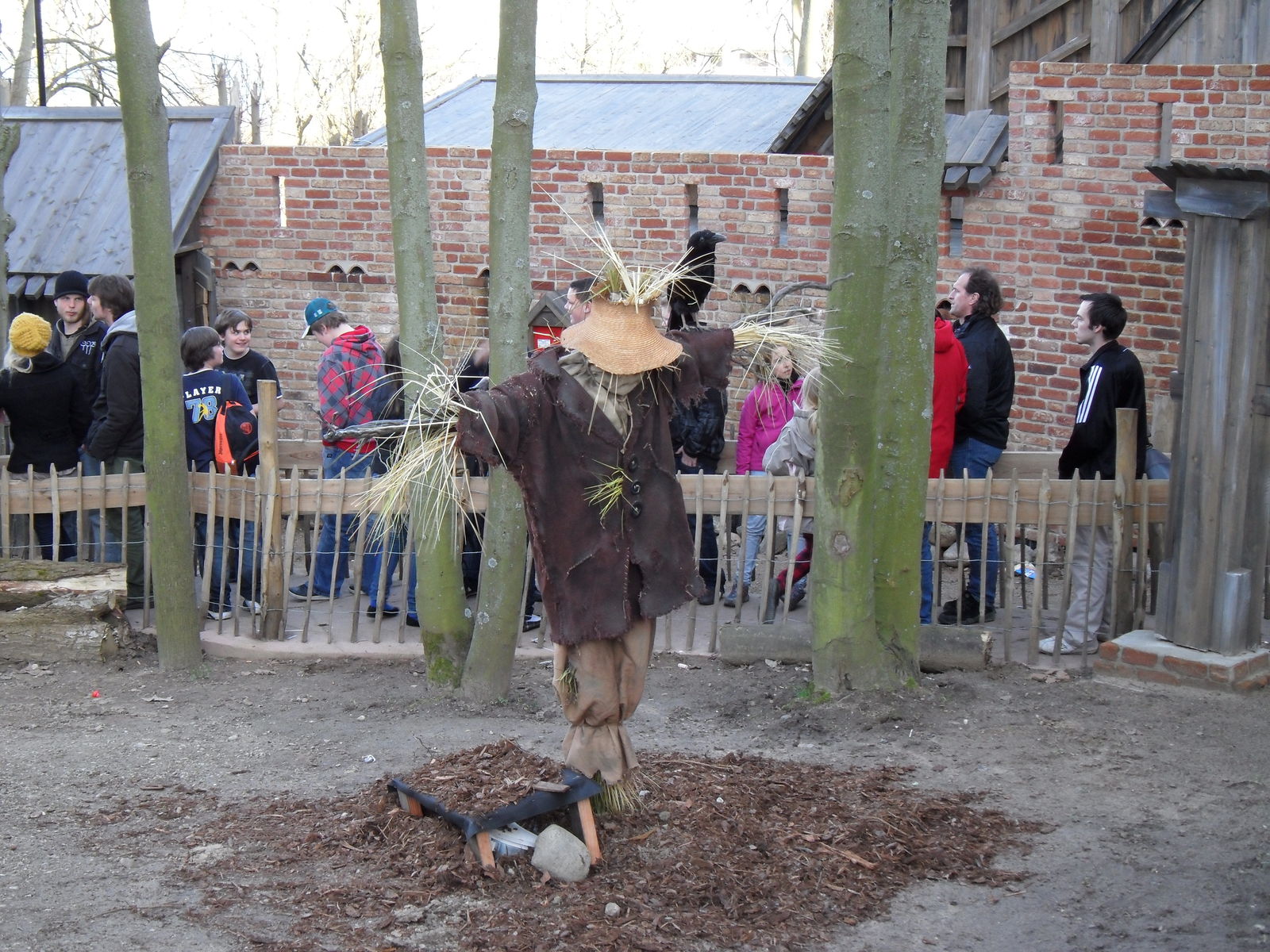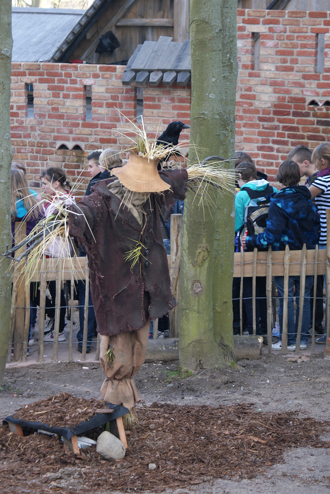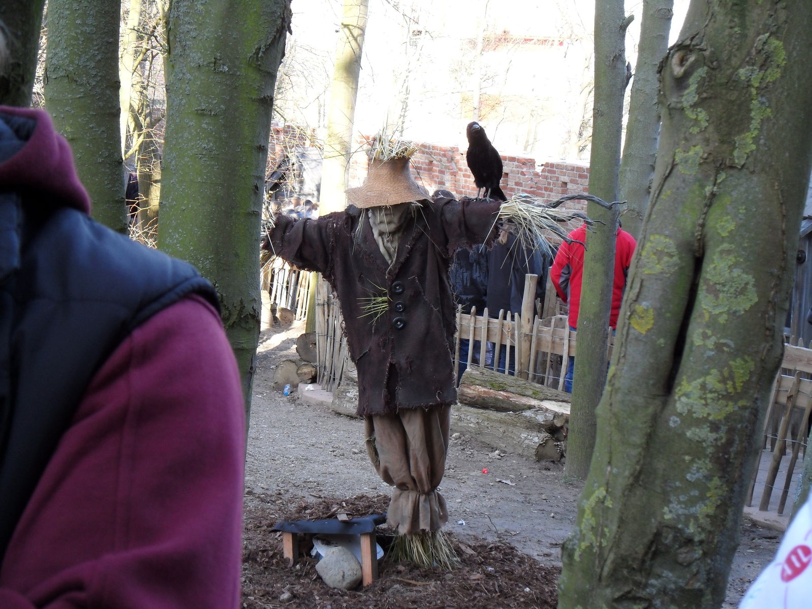 Wartezeit. Begrüßt wird man direkt von zwei Vogelscheuchen, von denen eine beweglich