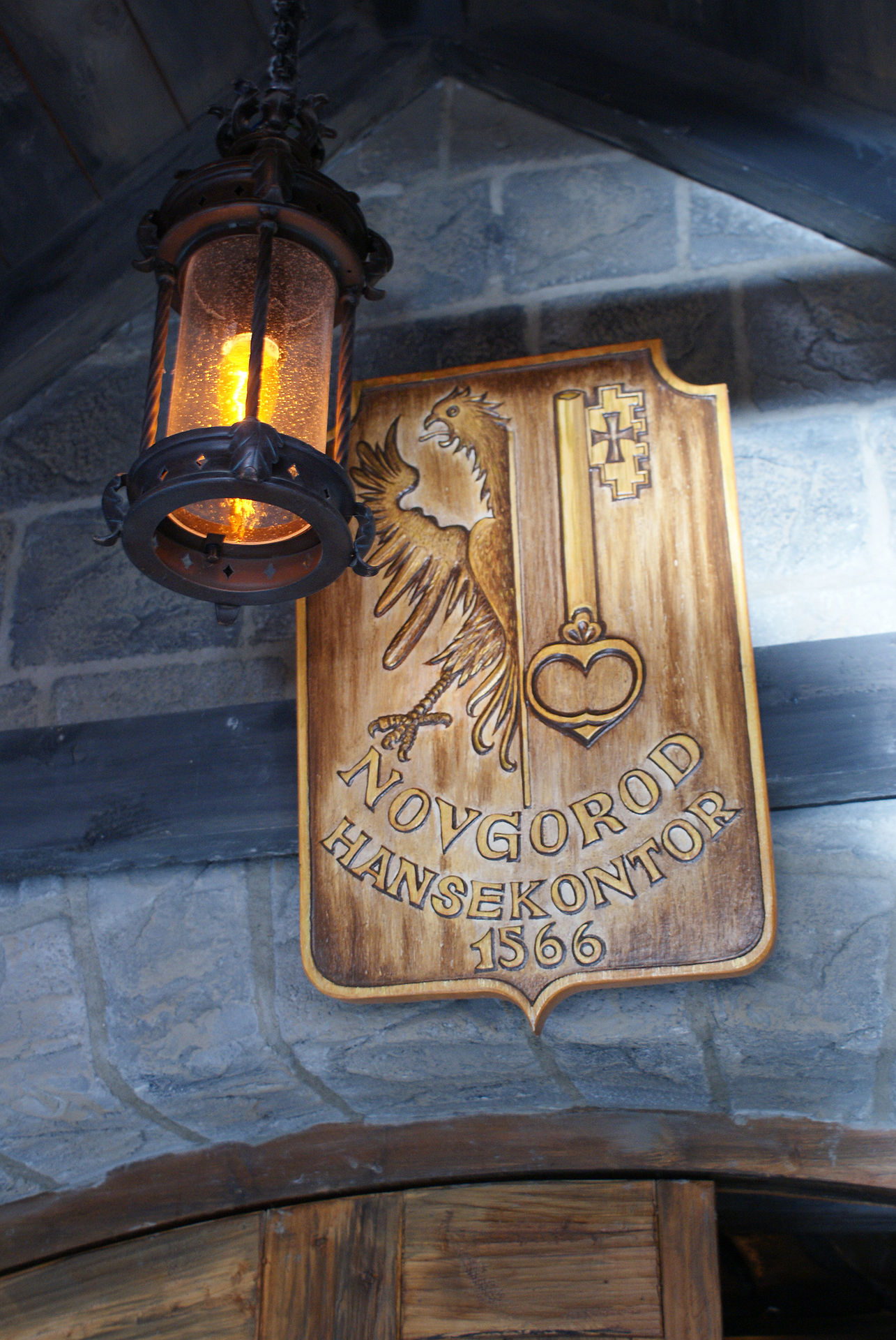 Nach Betreten des Hansekontors befinden sich auf der linken Site zwei Wandgemlde,