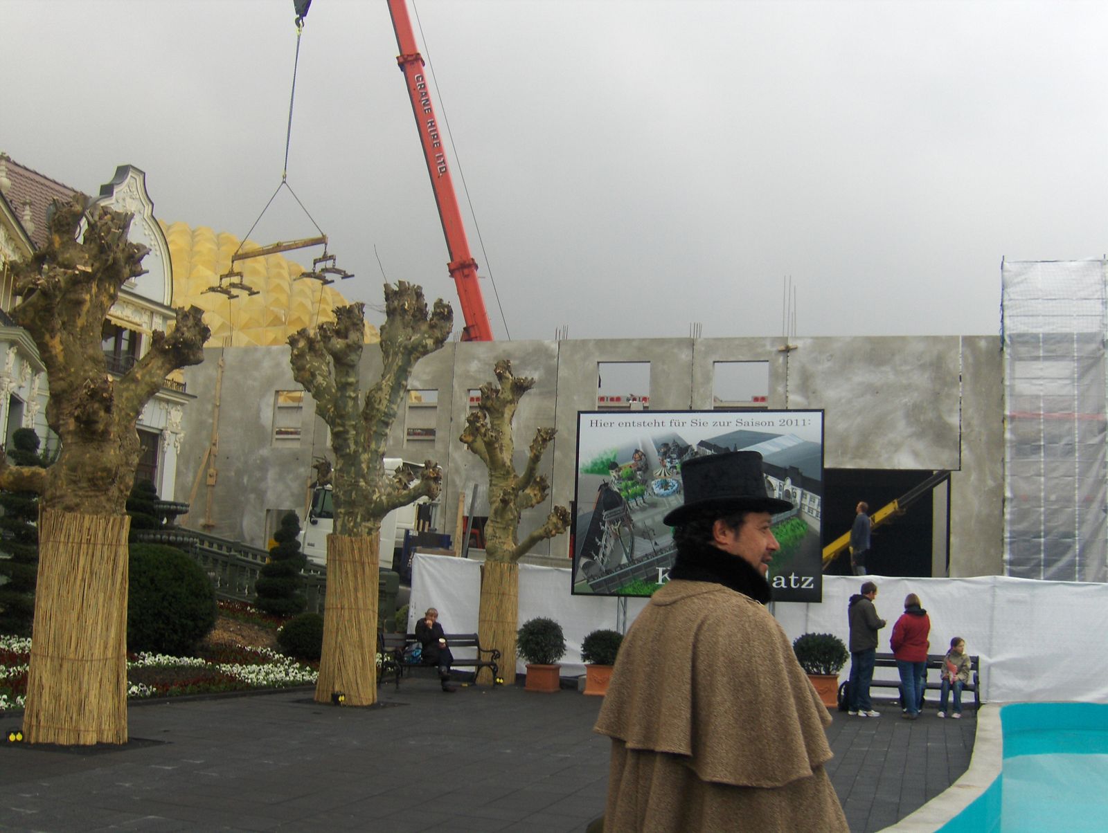 Ja, wer ist das denn der in der Mitte des Bildes mit kurzer Hose über den Platz geht?