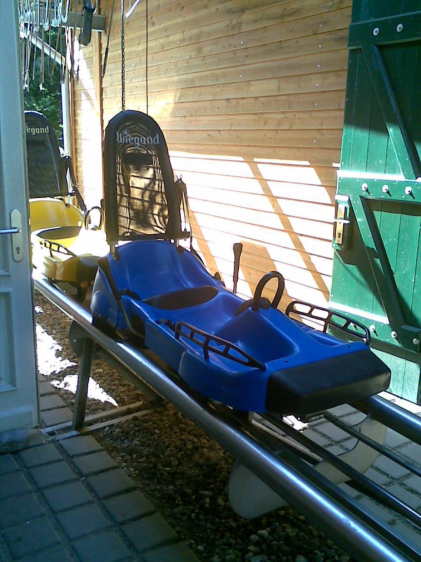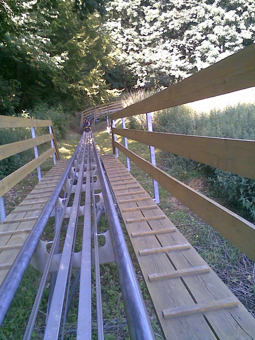 Hier ging es nur in Schrittgeschwindigkeit weiter uns so brauchte man fast eine Stunde bis man in Bergen bei der Sommerrodelbahn ankam. Hier war ganz schön was los und nach lösen der Fahrchips, stand man noch weitere 30 Minuten an. Kurze Einweisung und dann ging es auch direkt los, denn dieser Alpinecoaster der Firma Wiegand hat seinen Lift erst nach der eigentlichen Fahrt.