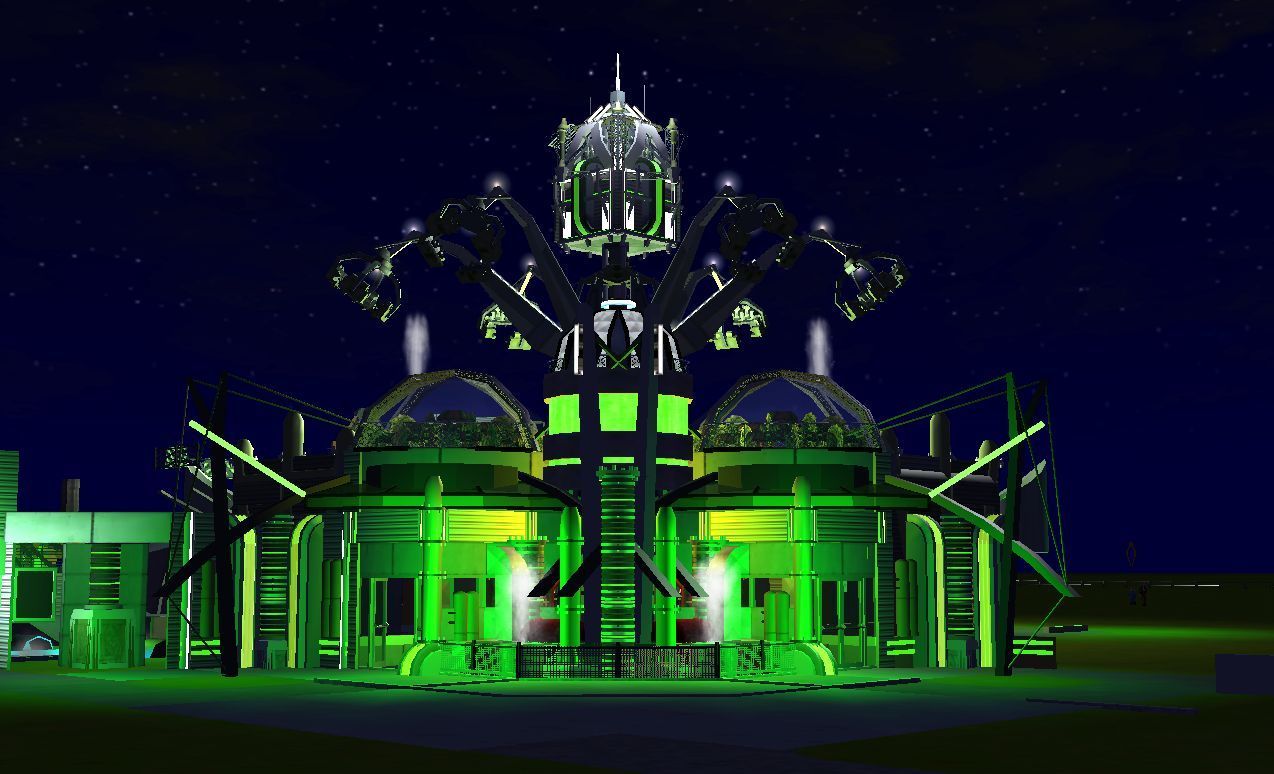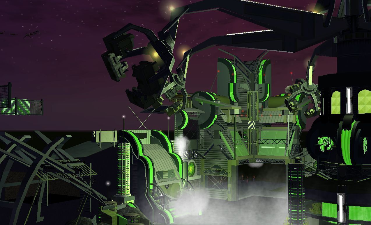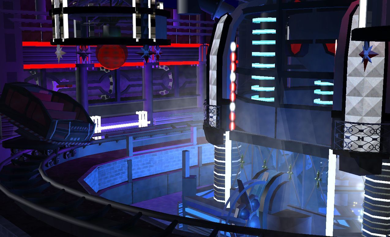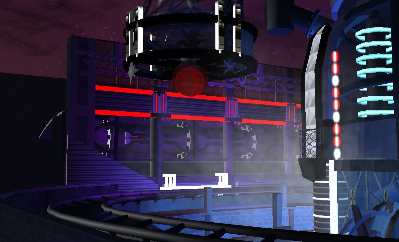 Heute gibt es die ersten Bilder vom Futurbereich. Insgesamt wird der Themenbereich 5 Attraktionen beherbergen. Davon sind bisher 4 von in einem im Bau befindlichen Zustand. Anfangen mit den Bildern tu ich heute aber mal beim Jump 2. Da dieses Gerät nicht sehr häufig in RCT 3 verwendet wird, und mir das Fahrprinzip doch irgendwie gefiel, habe ich diesen verwendet. Das Gerät wird später gleichzeitig einen weiteren Effekt erfüllen, nämlich für den Darkride einen Großteil der Halle verdecken.