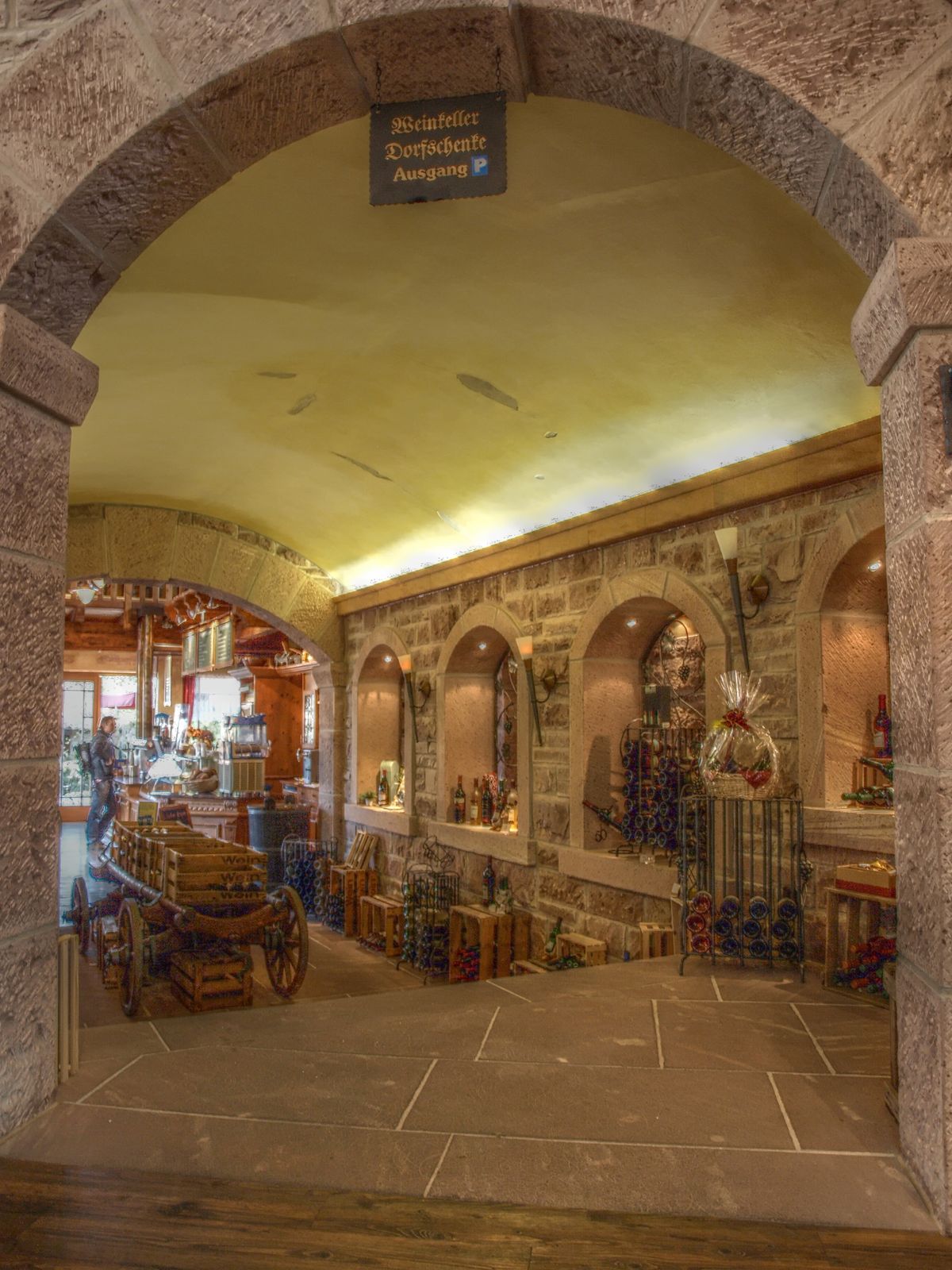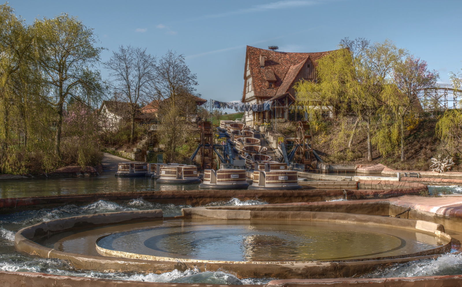 Der Wartebereich führt jetzt durch ein Sägewerk, in dem man links und rechts Sägen etc. anschauen kann, so wie im Waschzuberrafting die Waschtrommeln.